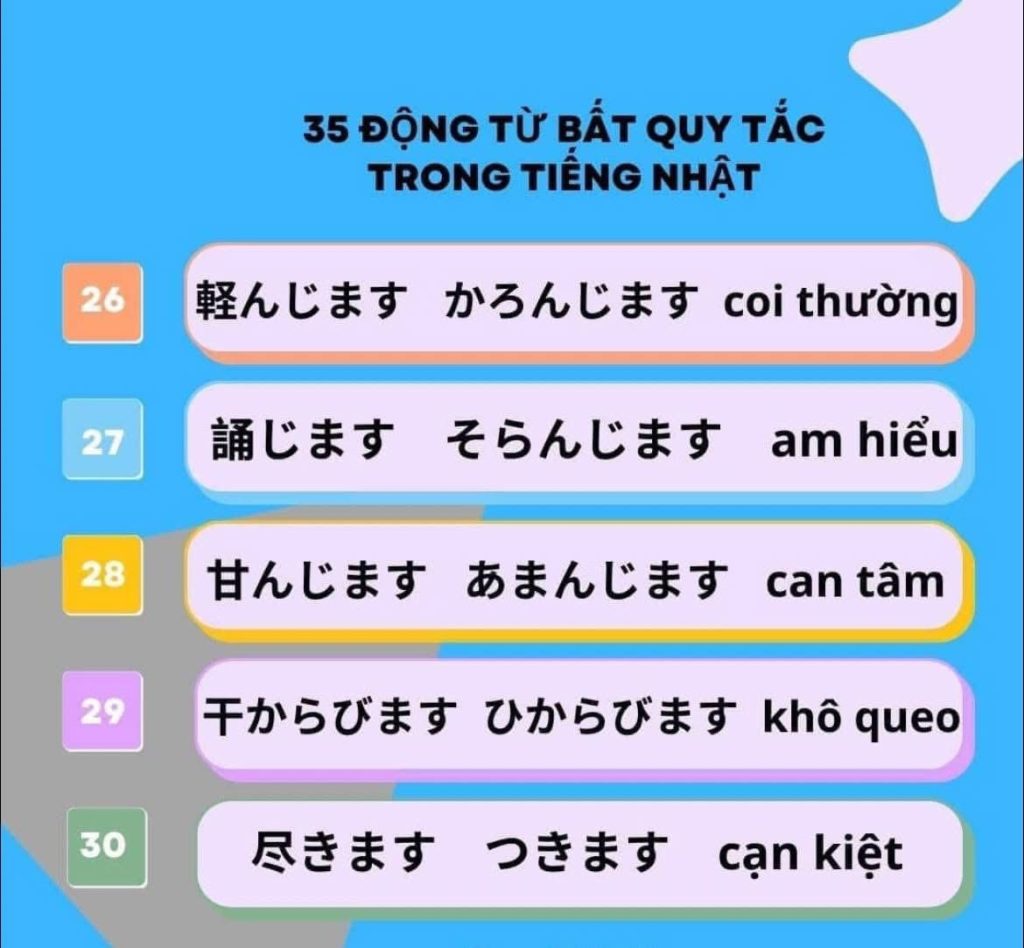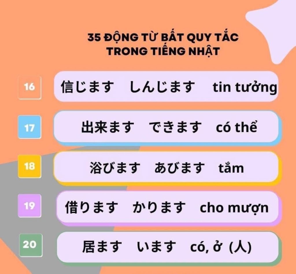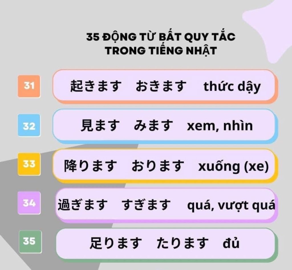 35 Động Từ bất quy tắc trong tiếng Nhật