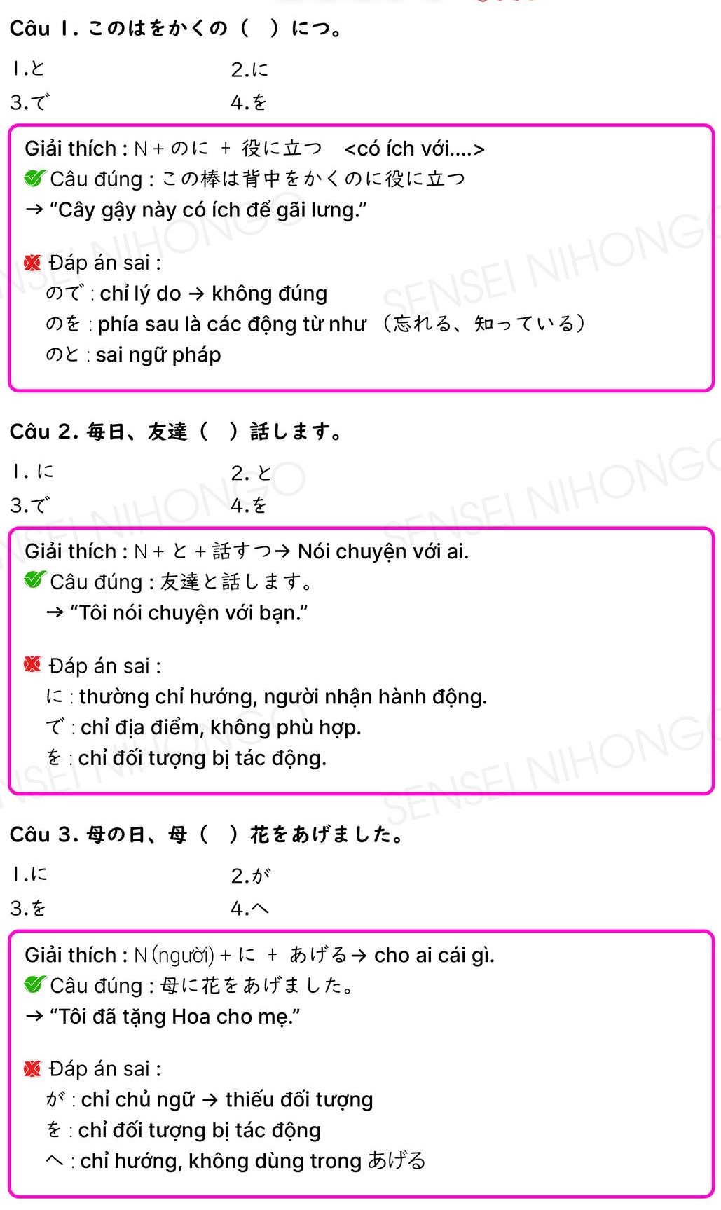 369 Câu Trợ Từ tiếng Nhật N5-N4 (Có đáp án)