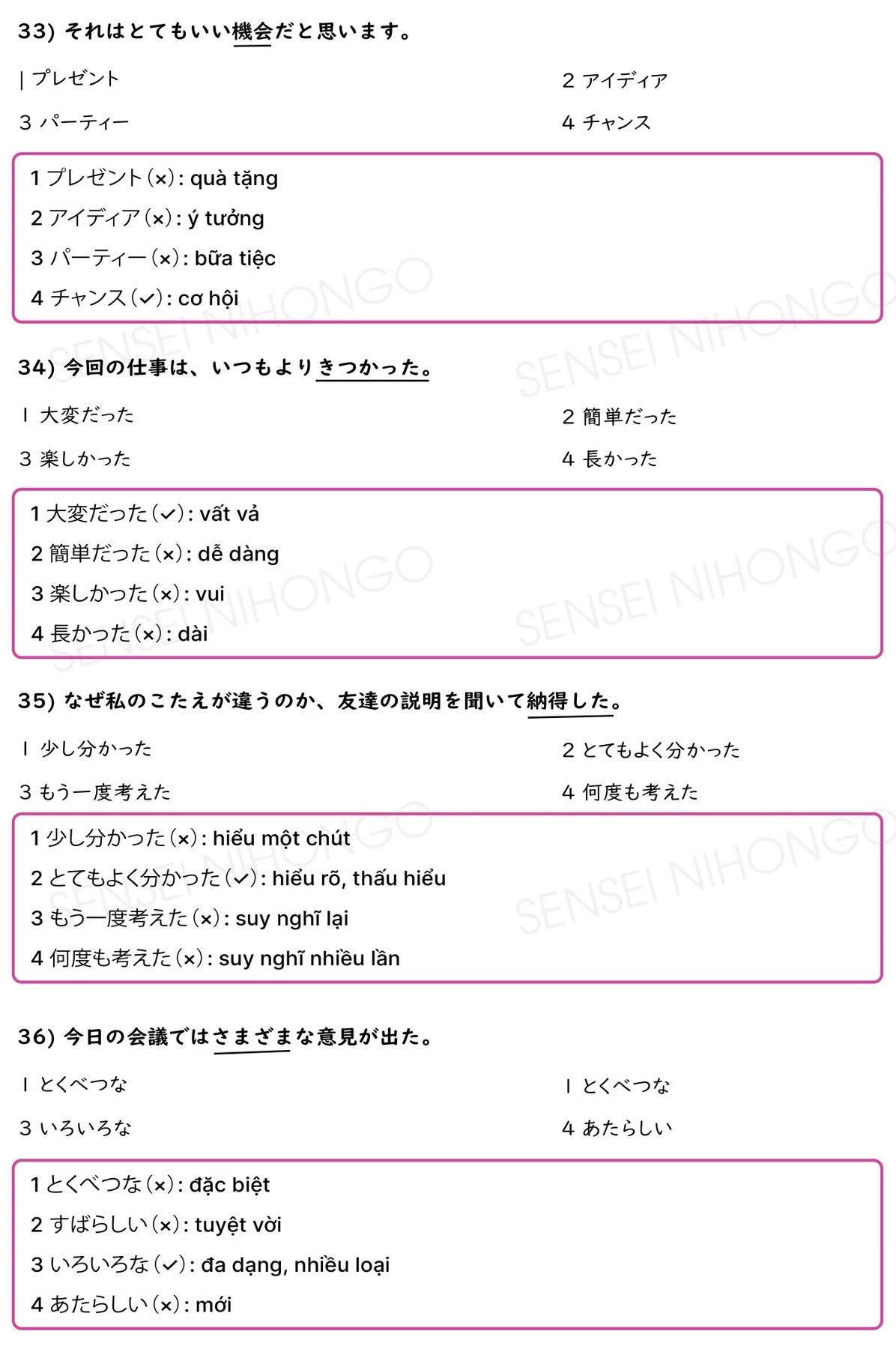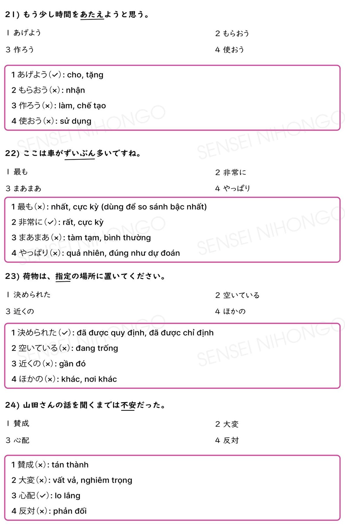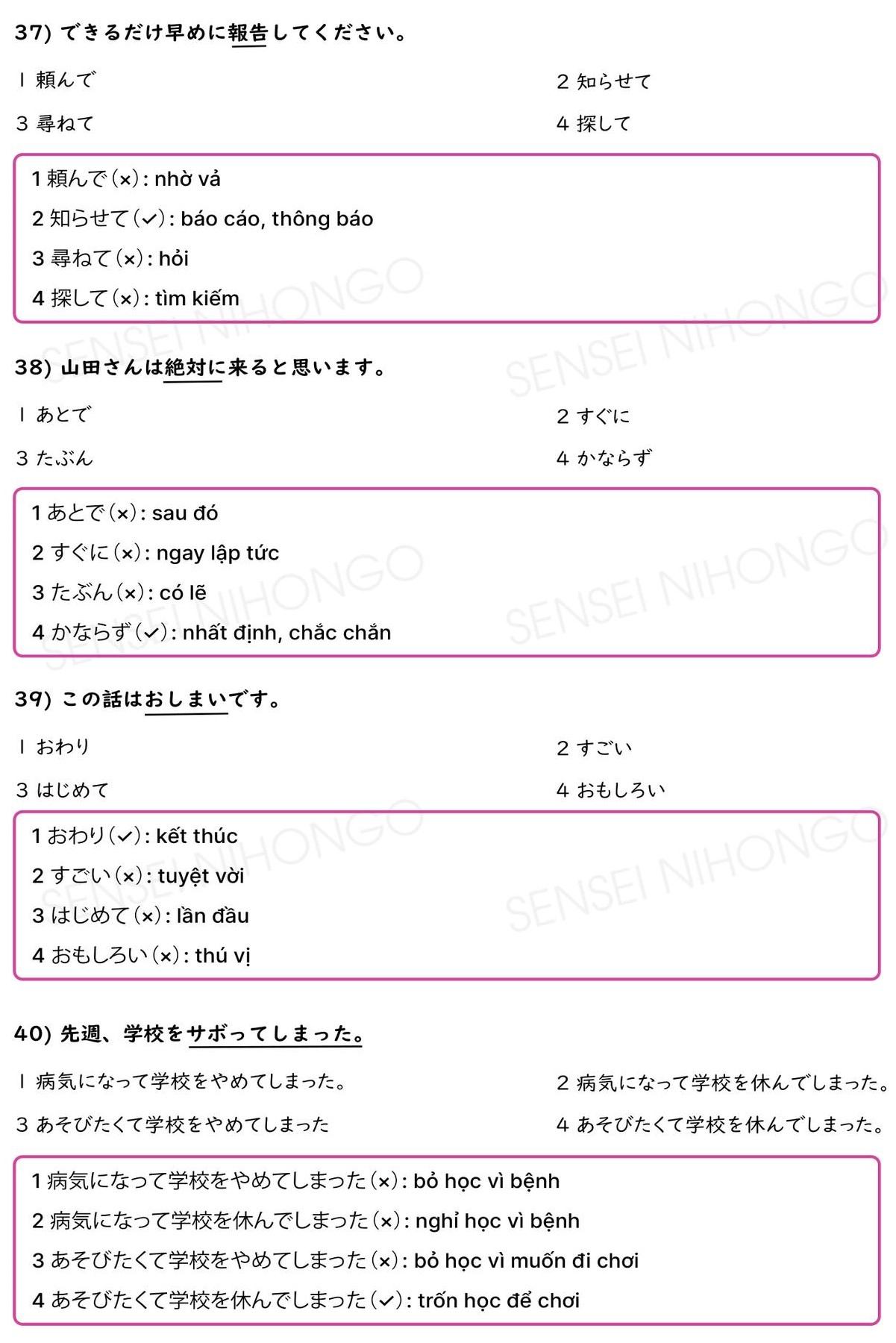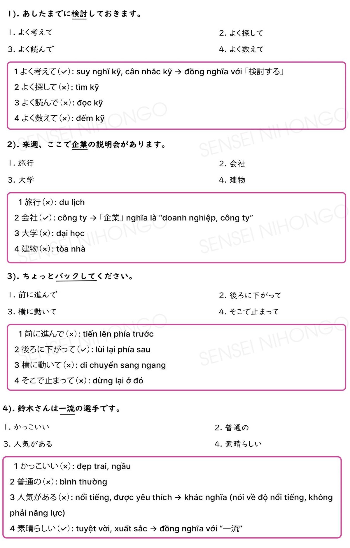 40 Câu Từ Đồng Nghĩa JLPT N3 (Có giải thích và đáp án)