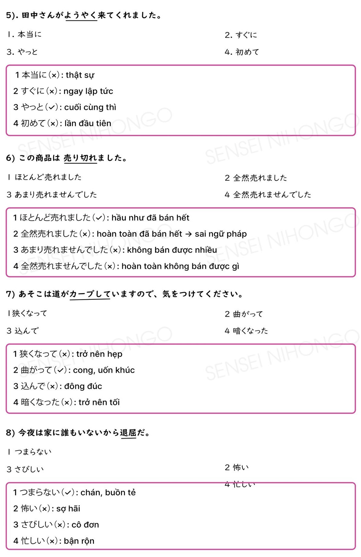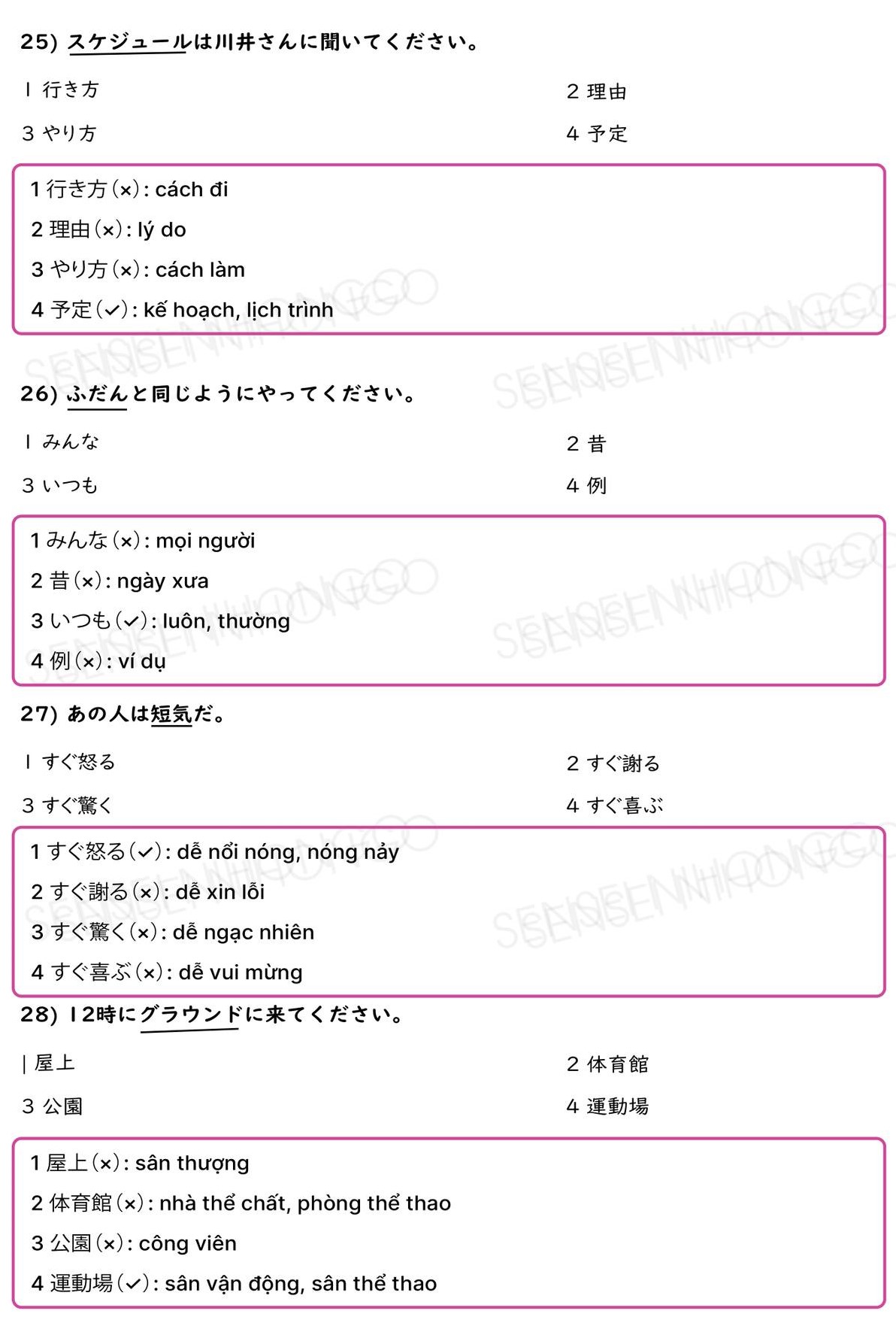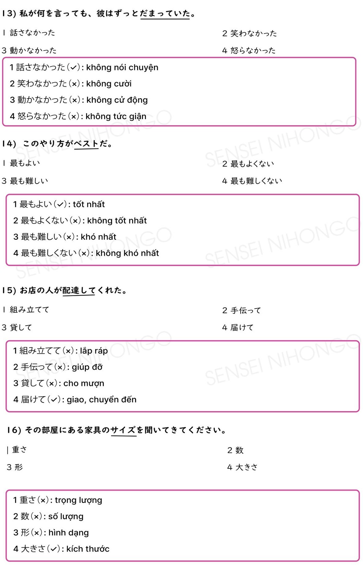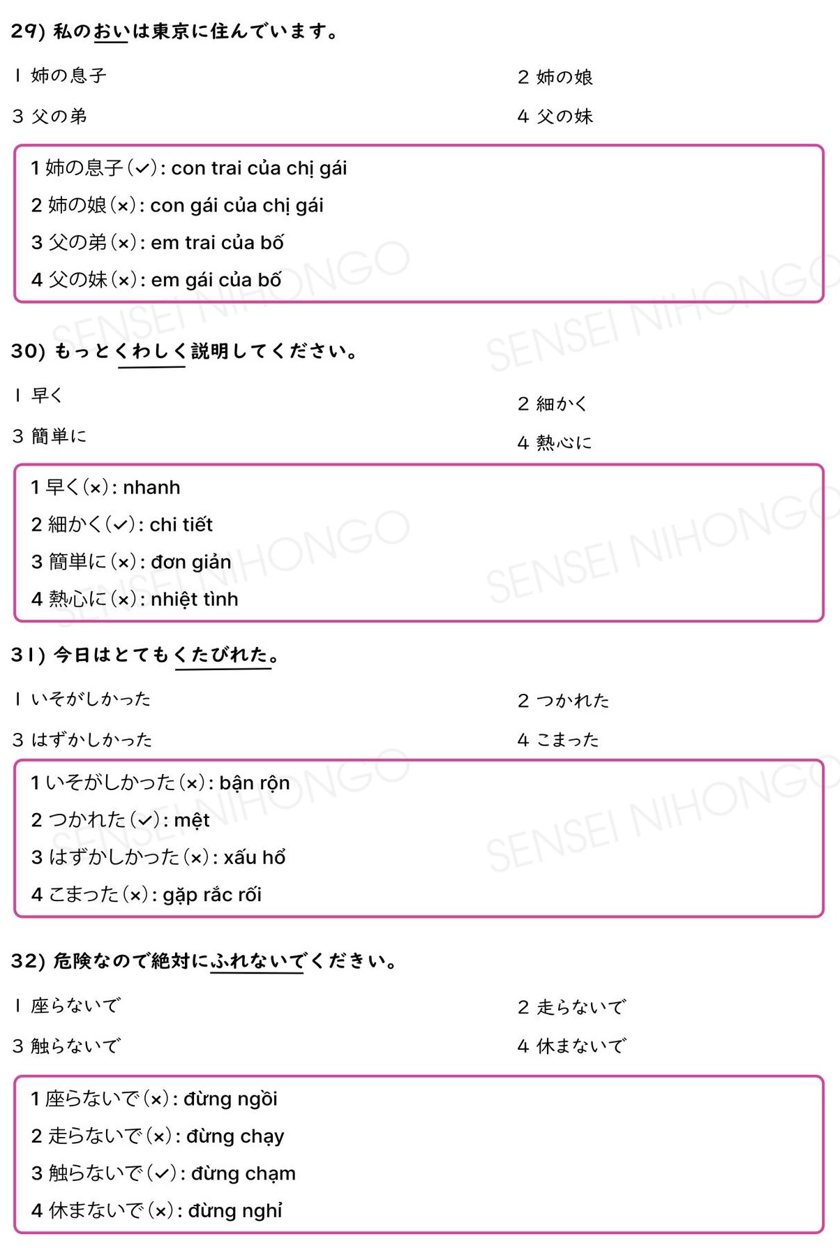 40 Câu Từ Đồng Nghĩa JLPT N3 (Có giải thích và đáp án)