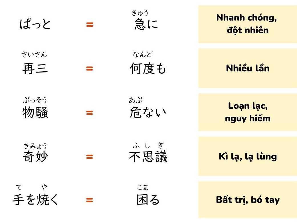 50 Cặp Từ Đồng Nghĩa N2 đã xuất hiện trong JLPT