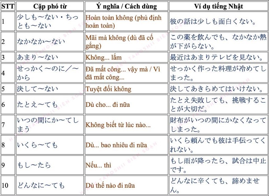 50 Cụm Phó Từ đi cùng nhau thường dùng trong Kaiwa và JLPT