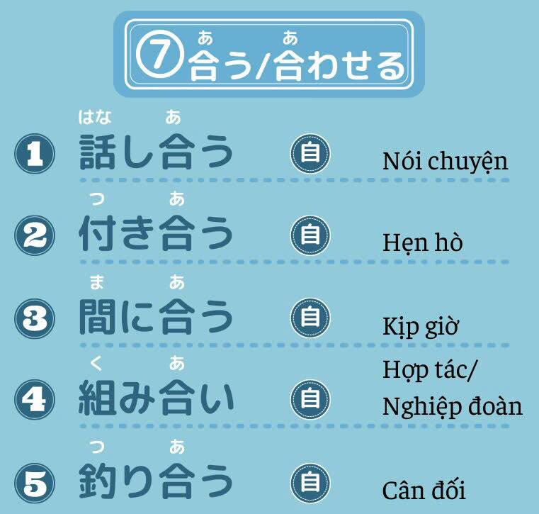Home / Từ vựng N3 / Tổng hợp 50 Động Từ ghép N3