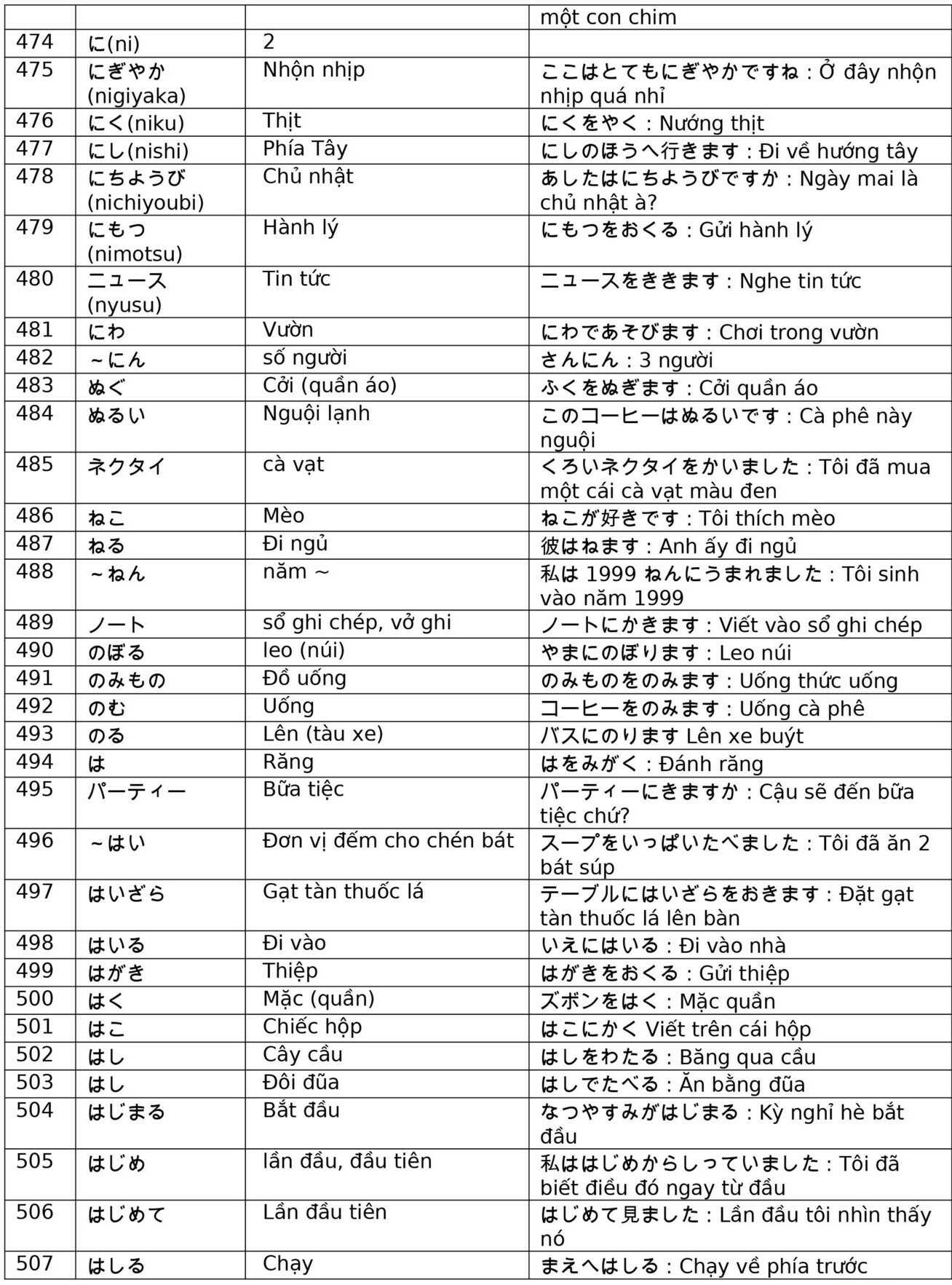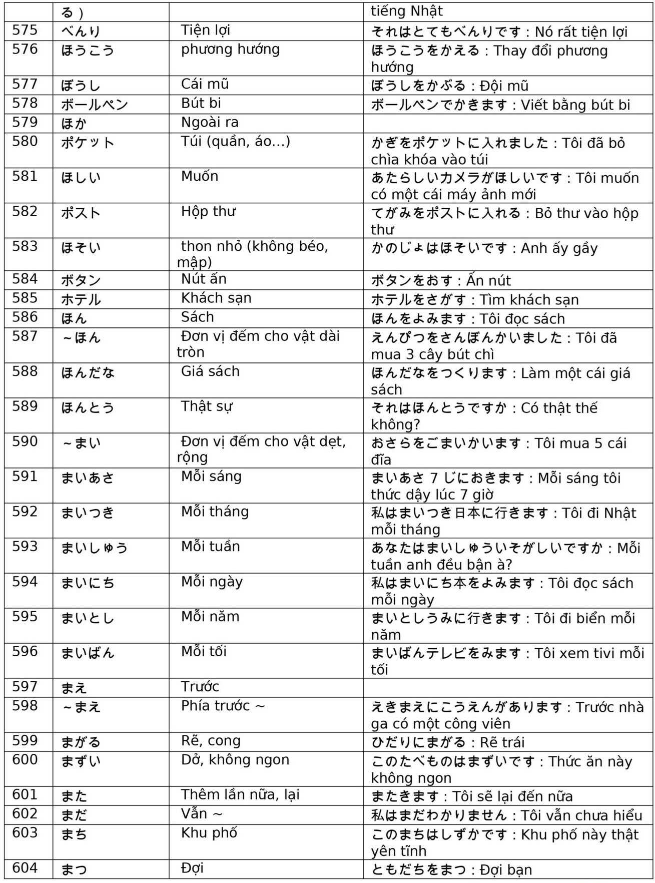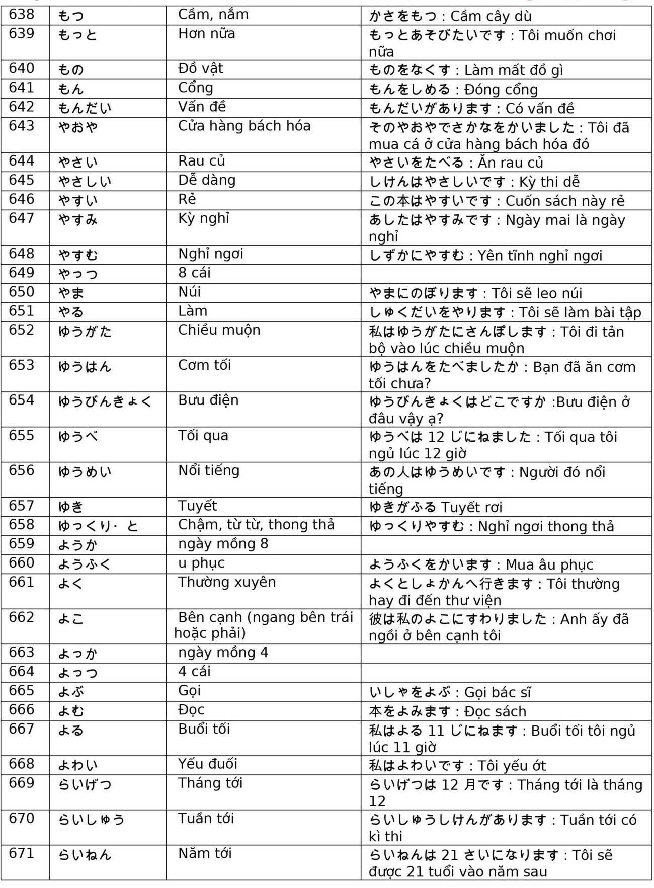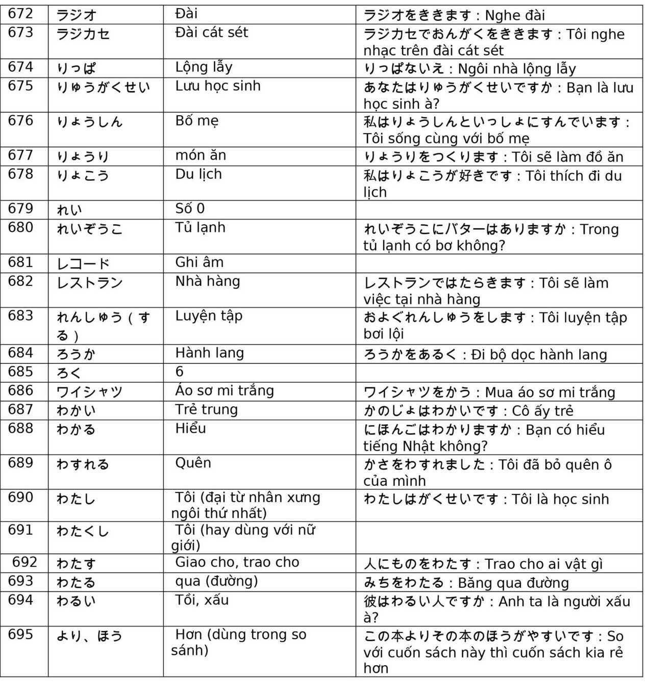 Tổng hợp 700 Từ vựng tiếng Nhật kèm ví dụ dịch Nhật – Việt