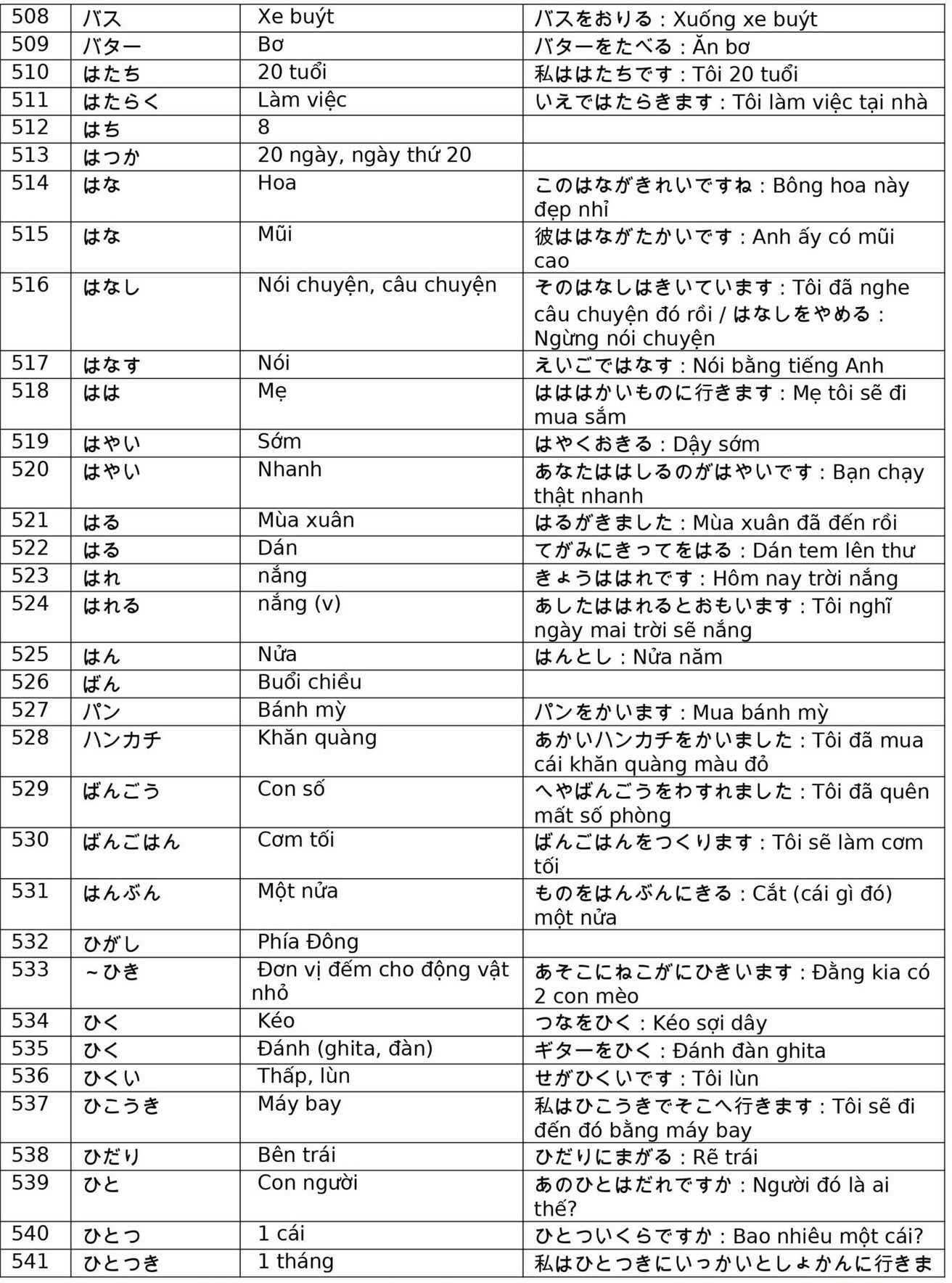 700 Từ vựng tiếng Nhật kèm ví dụ – Phần 3