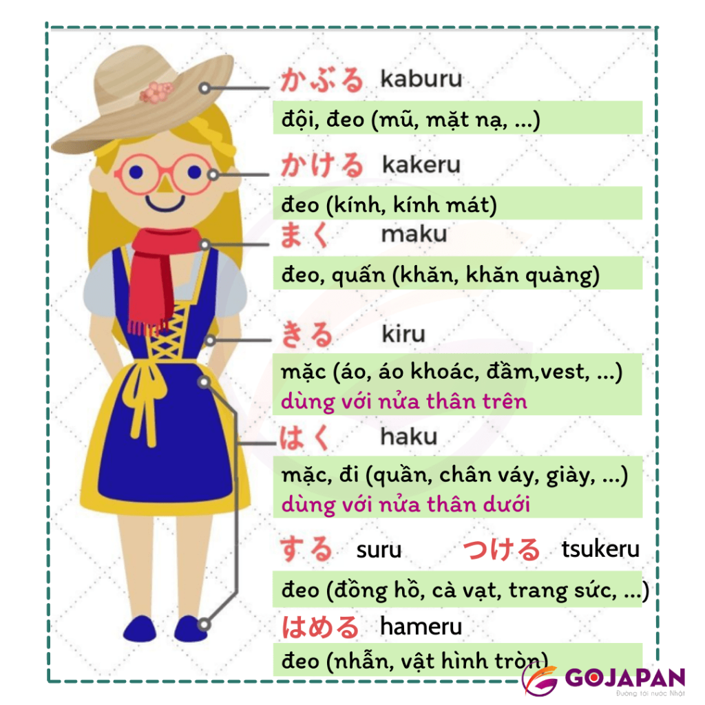 8 Động Từ Mặc, Khoác, Đeo, Đội trong tiếng Nhật