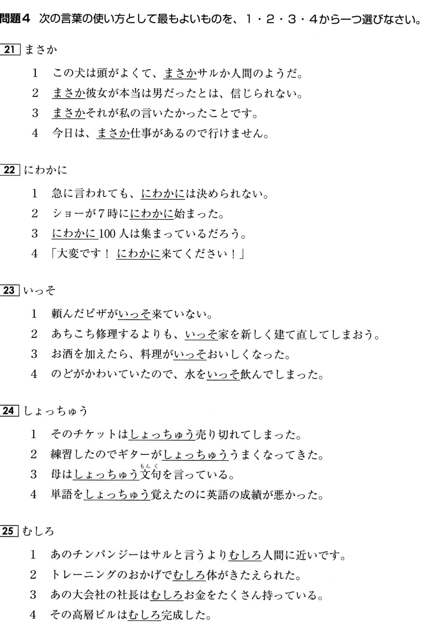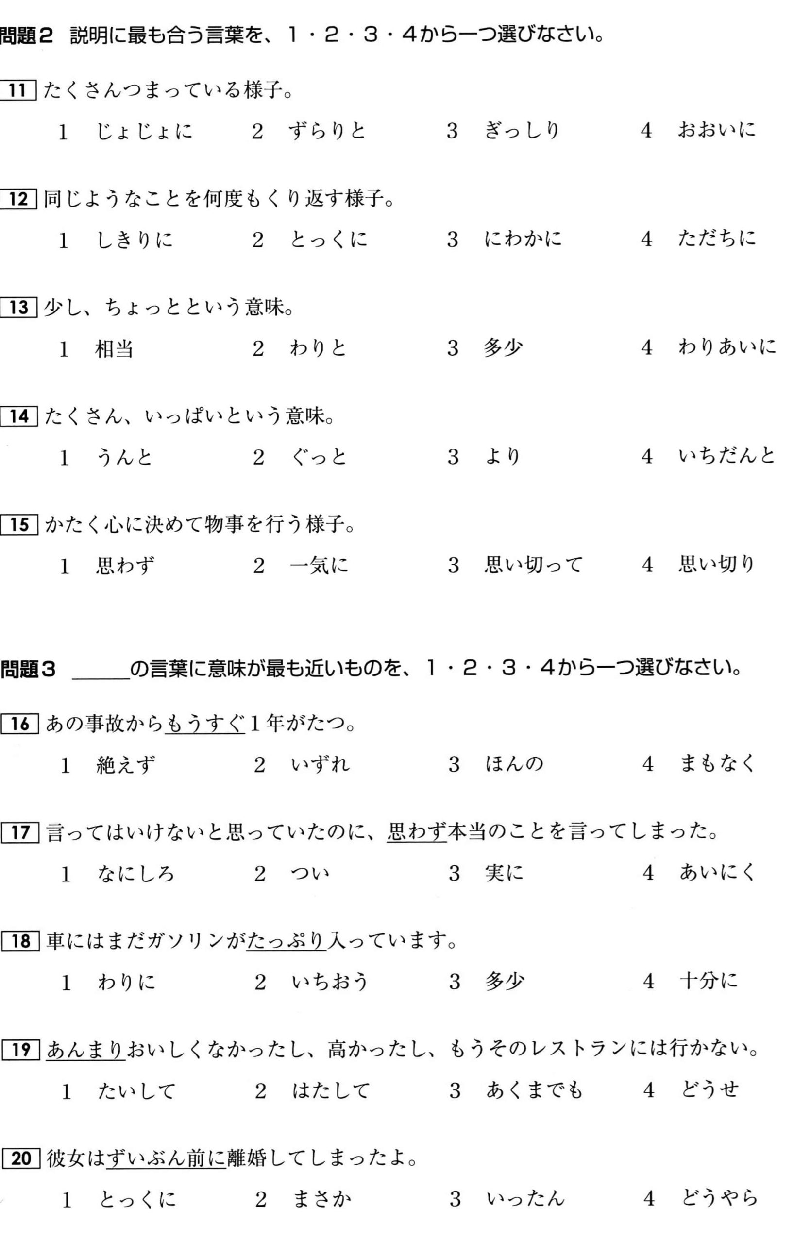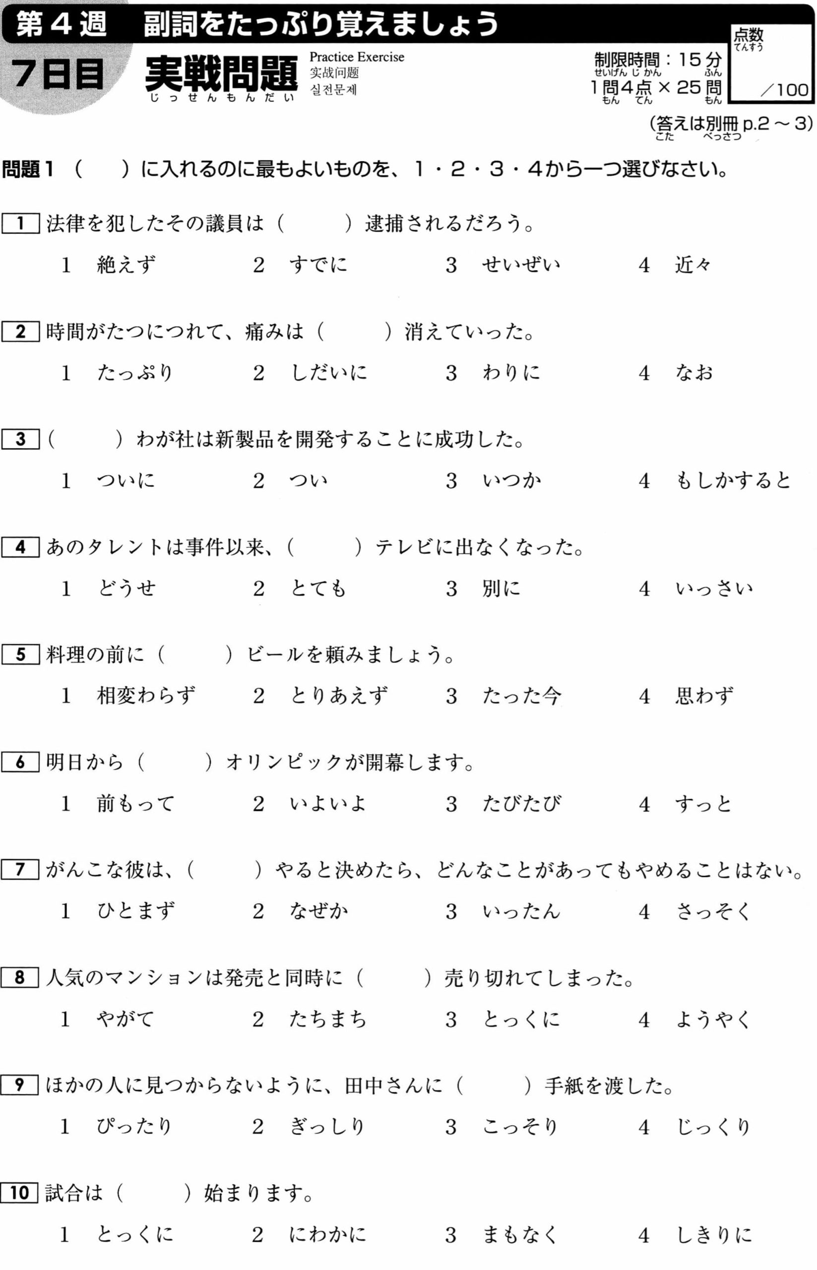 Bài tập Từ vựng N2: Phần 4 (Có đáp án)