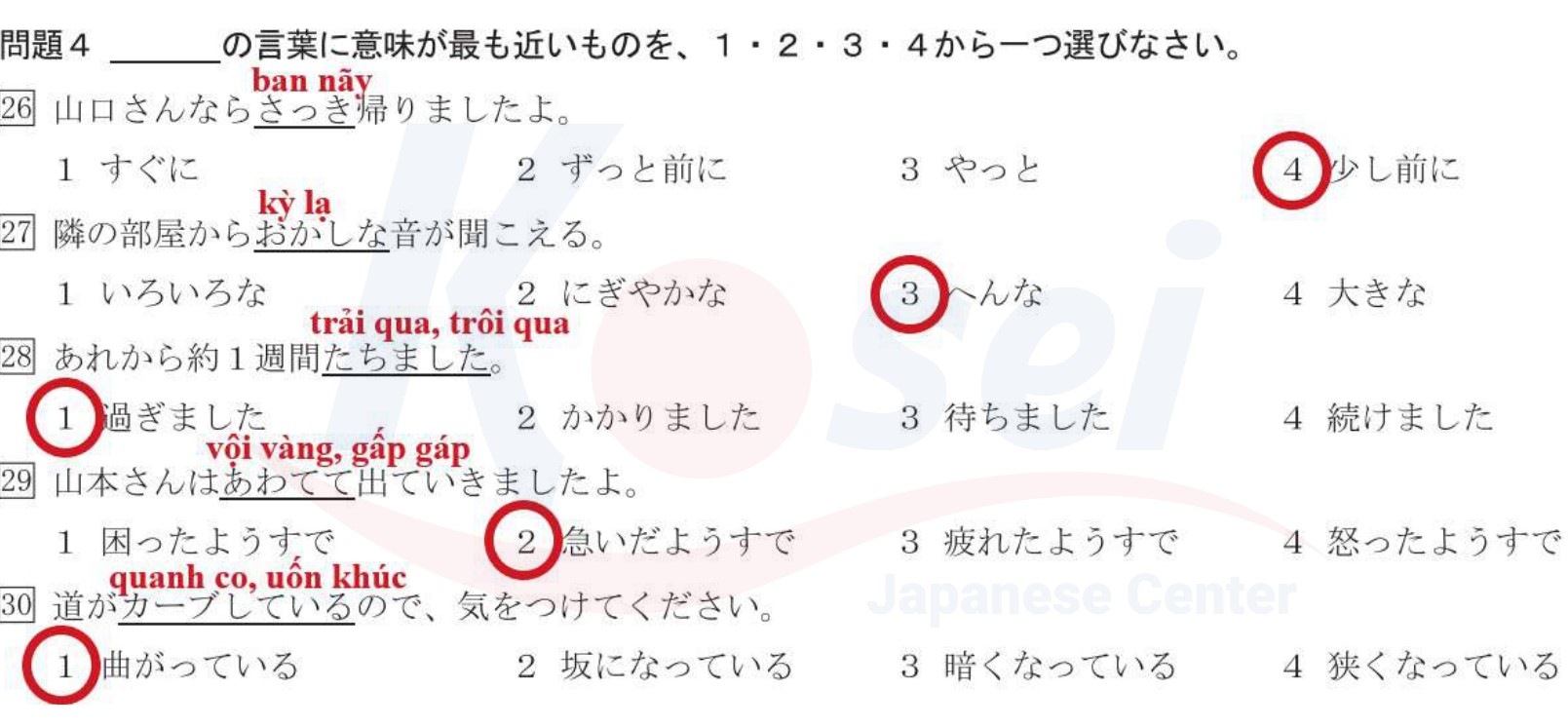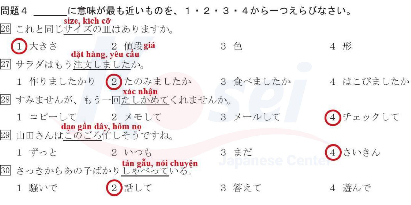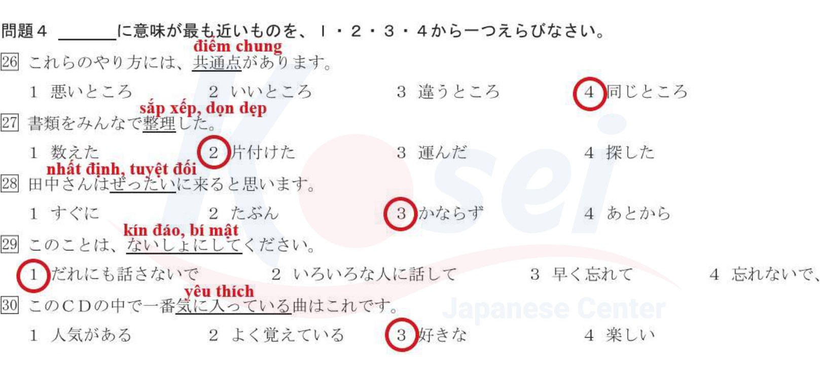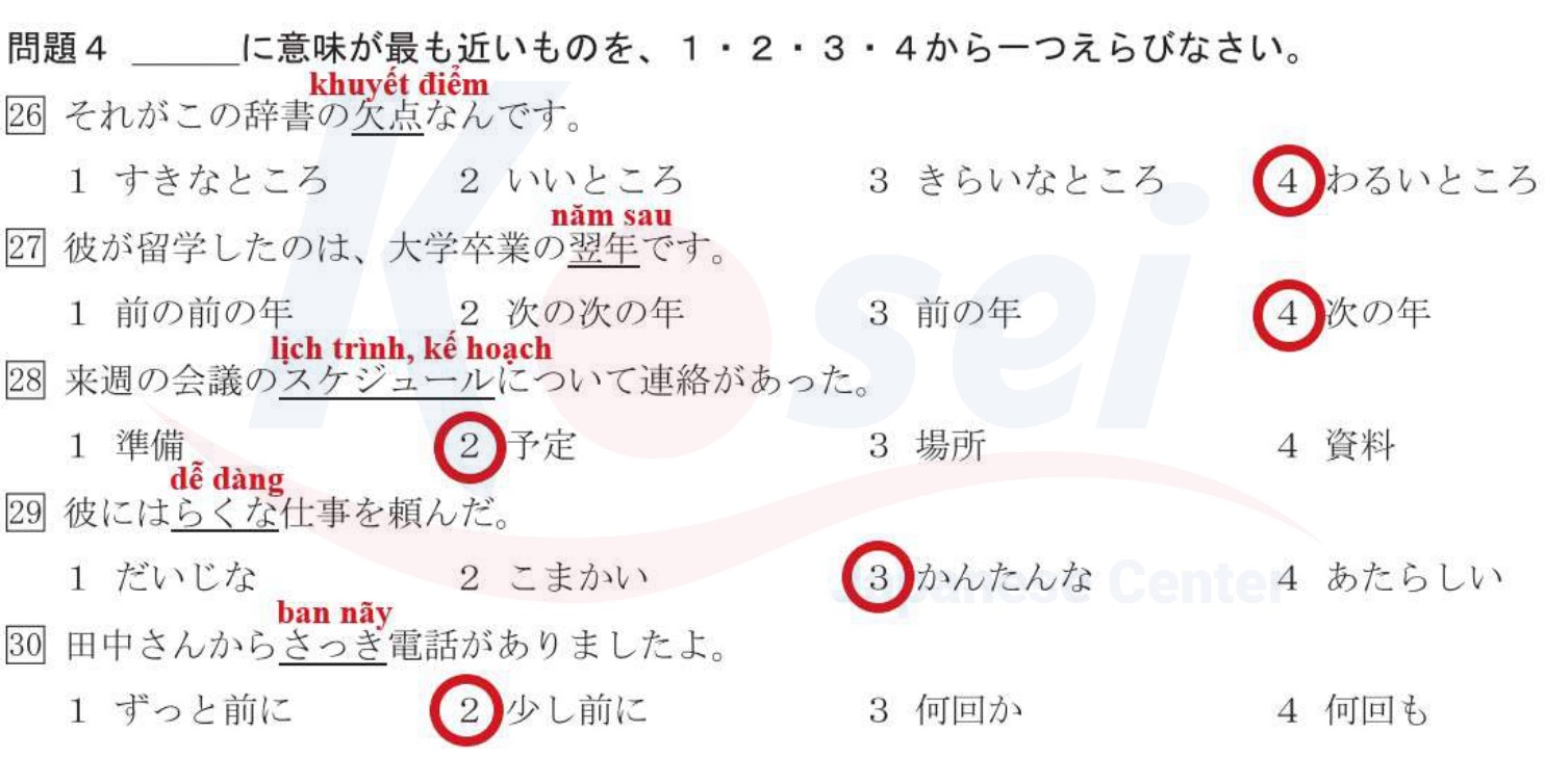 Các câu về Từ Gần Nghĩa JLPT N3: Phần 2 (có đáp án)