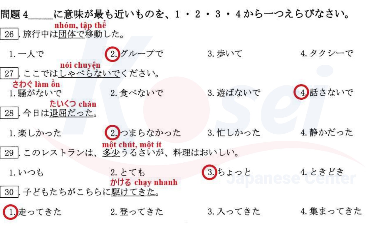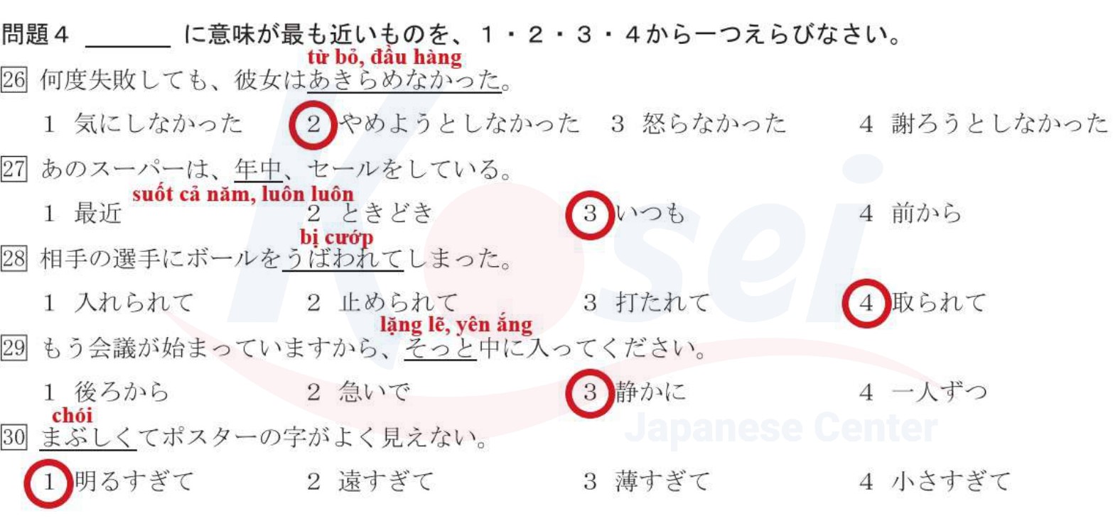 70 câu về từ gần nghĩa đã từng xuất hiện trong đề JLPT N3 các năm.