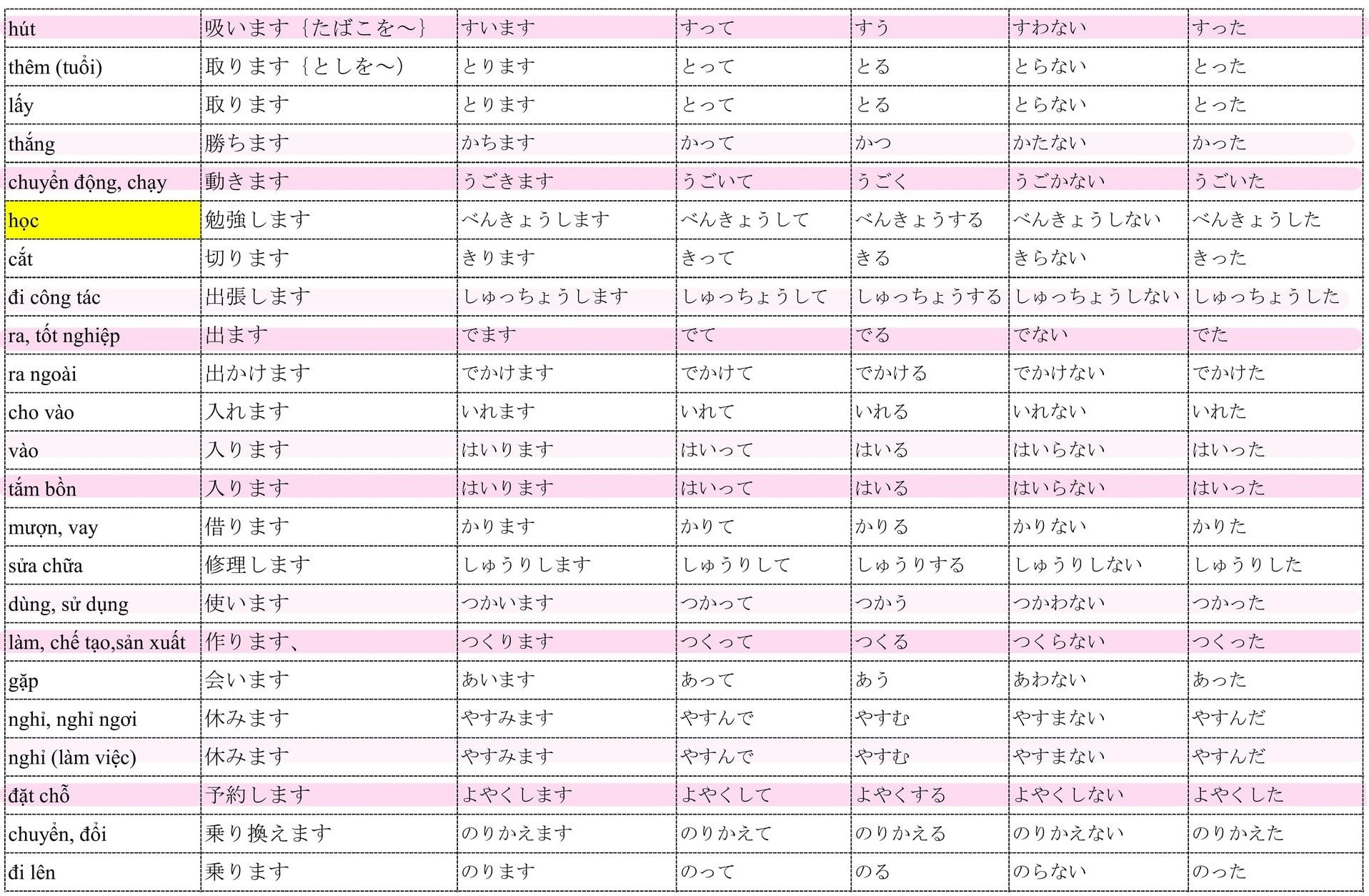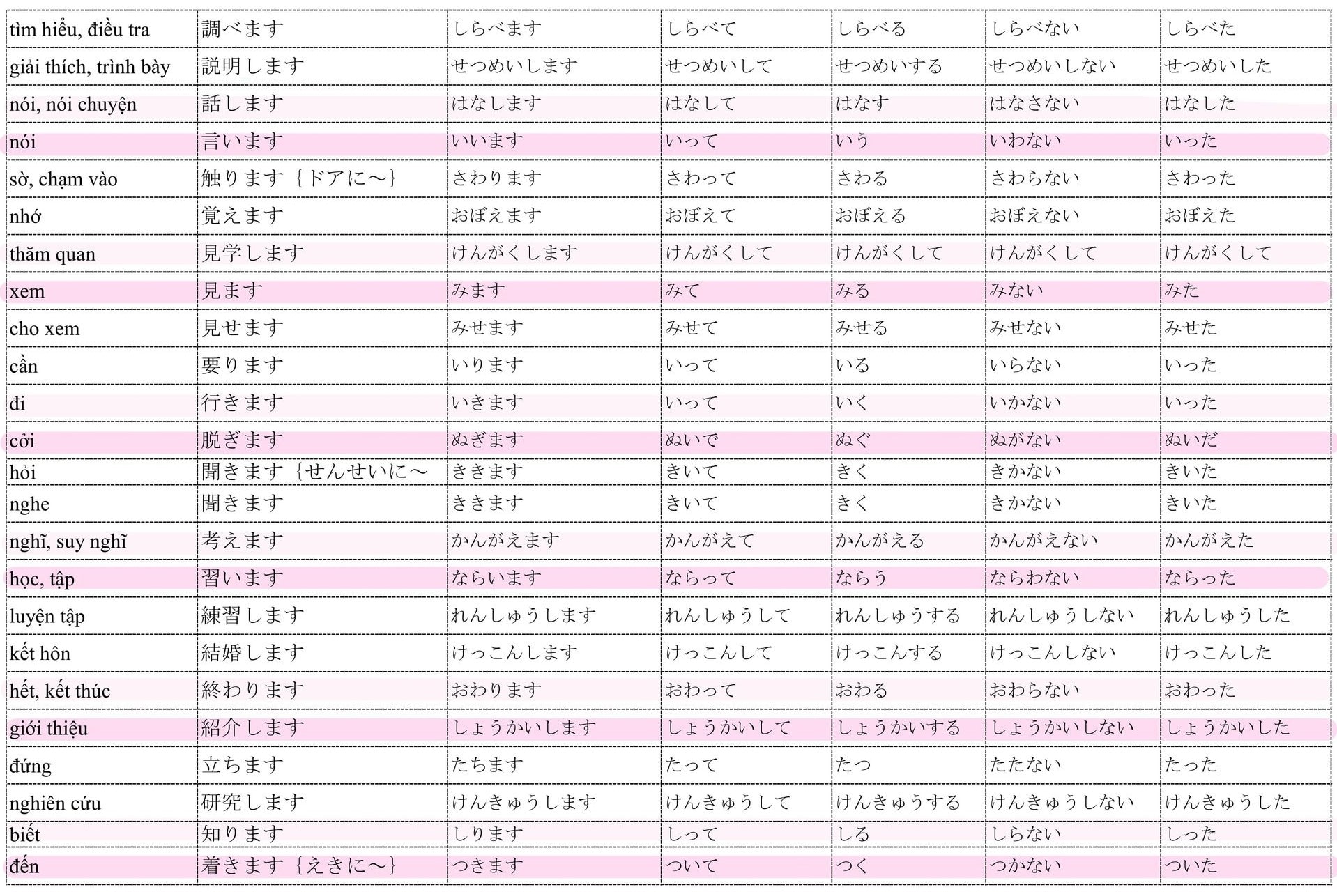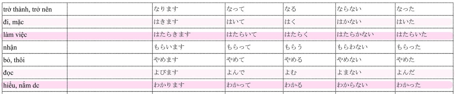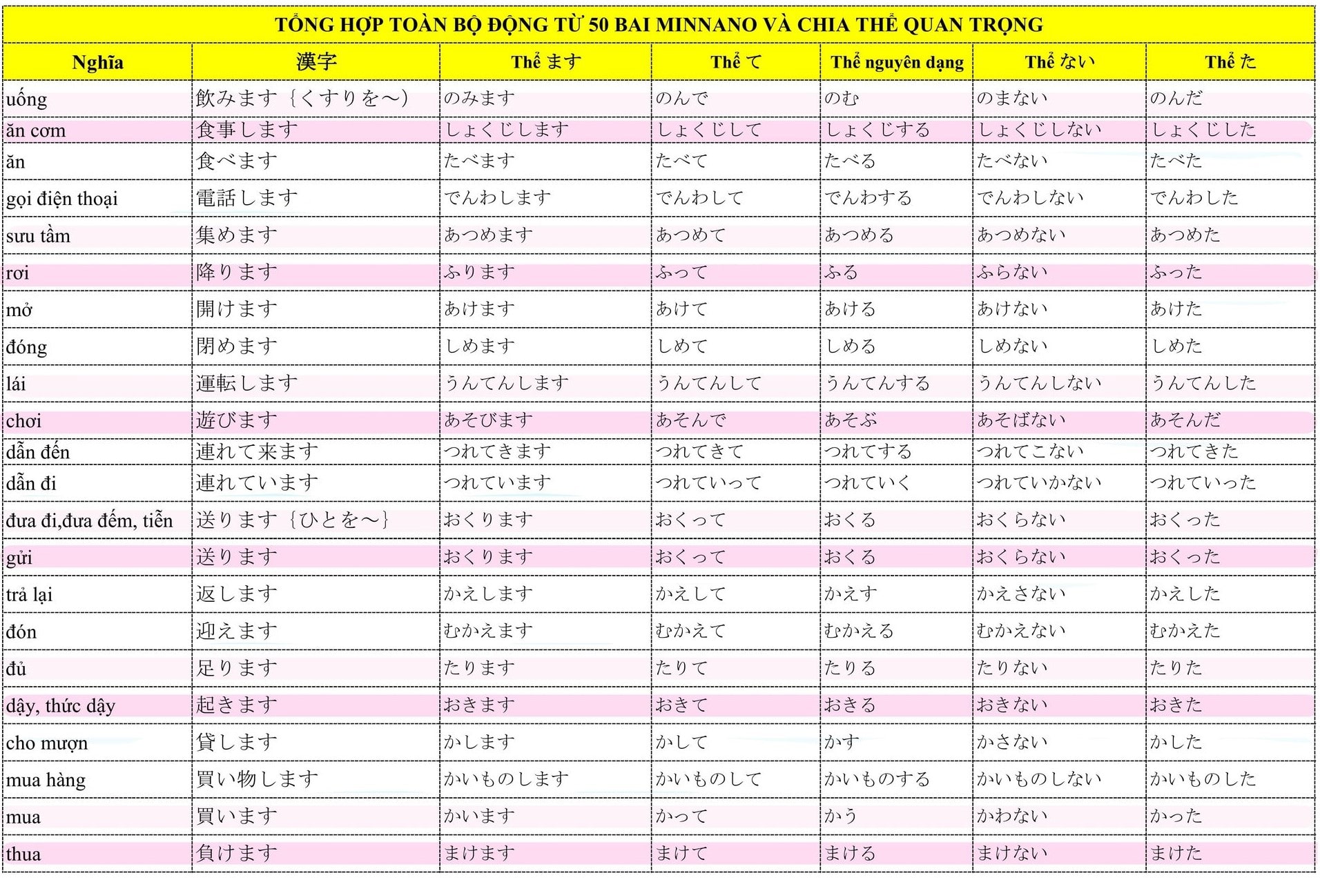 Tổng hợp Động Từ trong 50 bài Minna no Nihongo và chia thể quan trọng
