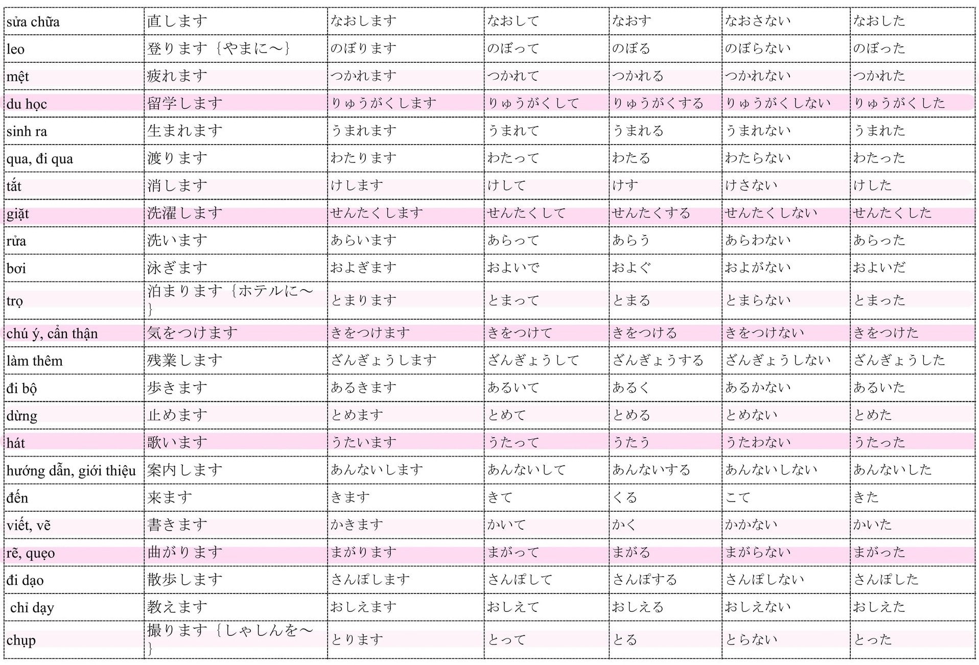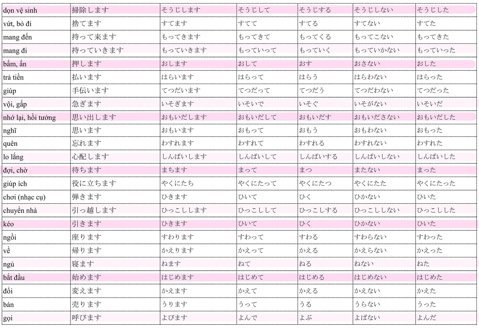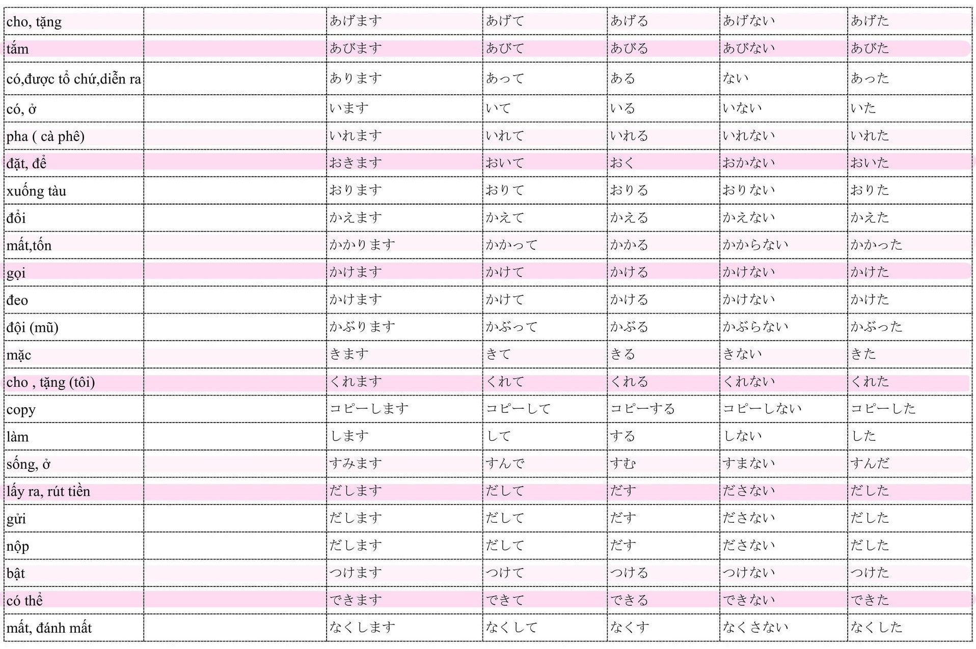 Tổng hợp Động Từ trong 50 bài Minna no Nihongo và chia thể quan trọng