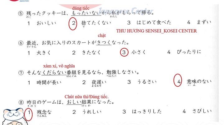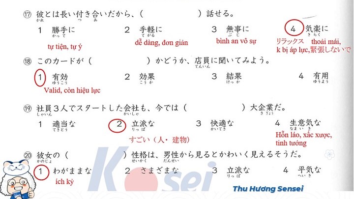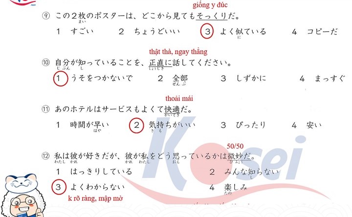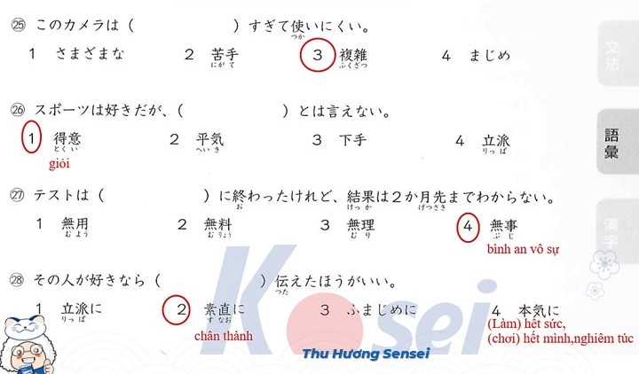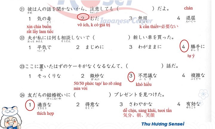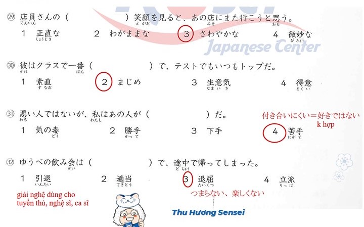 Bài tập Từ vựng JLPT N3 (Có đáp án)