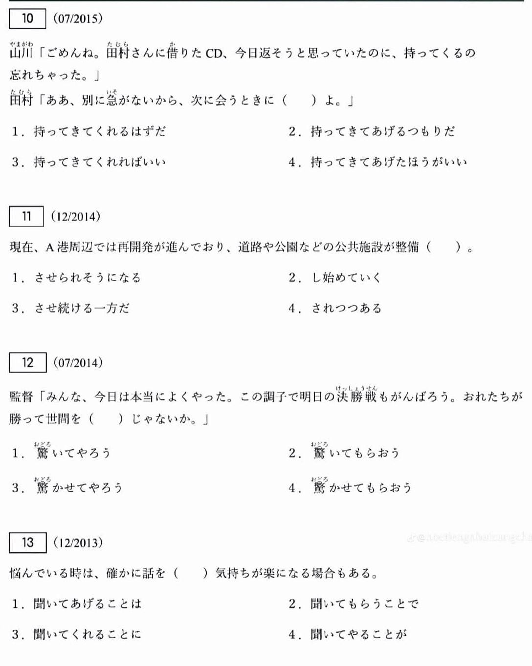 Sau đây chúng ta sẽ cùng TiengNhatHay học và làm các bài liên quan đến Thể Sai Khiến trong JLPT N2.