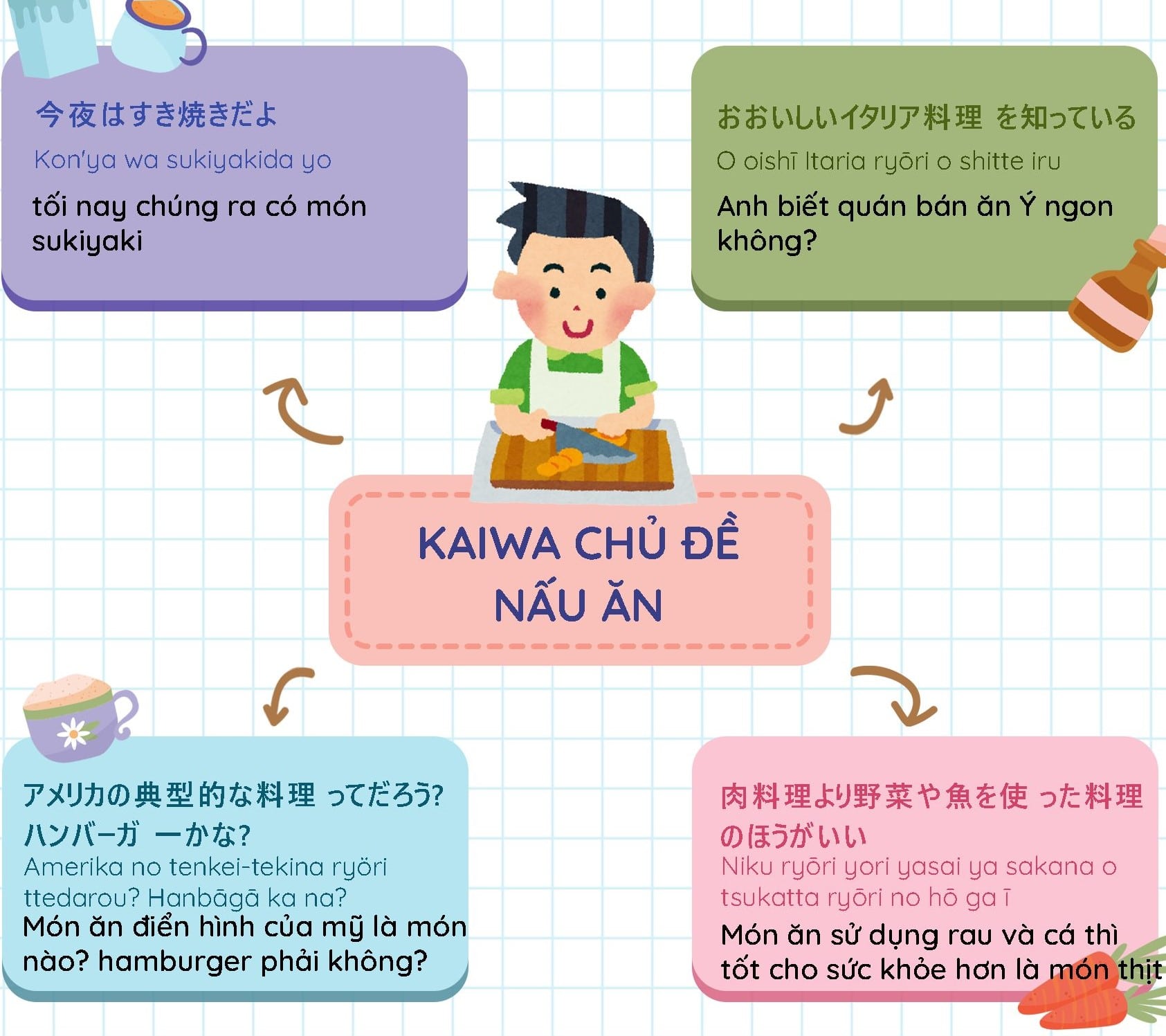 Tổng hợp các mẫu kaiwa chủ đề nấu ăn