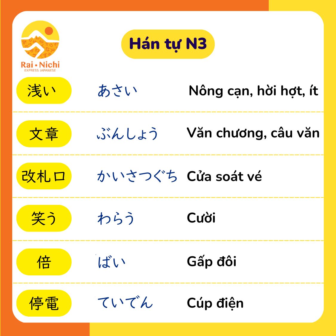 Tổng hợp Kanji N3 thường gặp trong JLPT N3 các năm