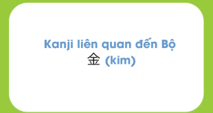 Kanji liên quan đến Bộ 金 (kim) No. Kanji Hiragana Nghĩa 1 金 かね / きん Tiền / Vàng 2 黄金 おうごん Kim loại vàng 3 金属 きんぞく Kim loại 4 金融 きんゆう Tài chính tiền tệ 5 金庫 きんこ Két sắt tiền 6 金銭 きんせん Tiền bạc 7 金額 …