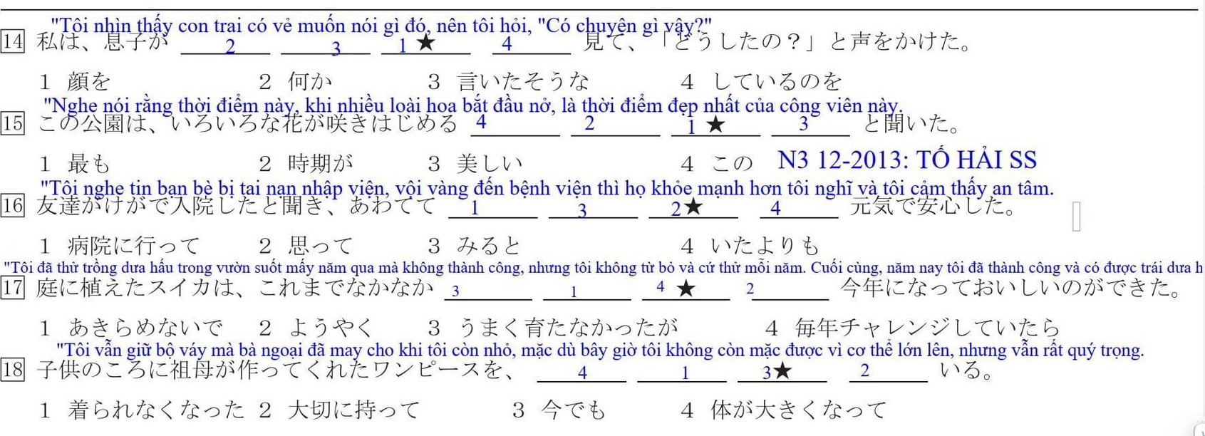 Làm bài Điền Sao được trích trong JLPT N3 (12/2011 – 12/2019)