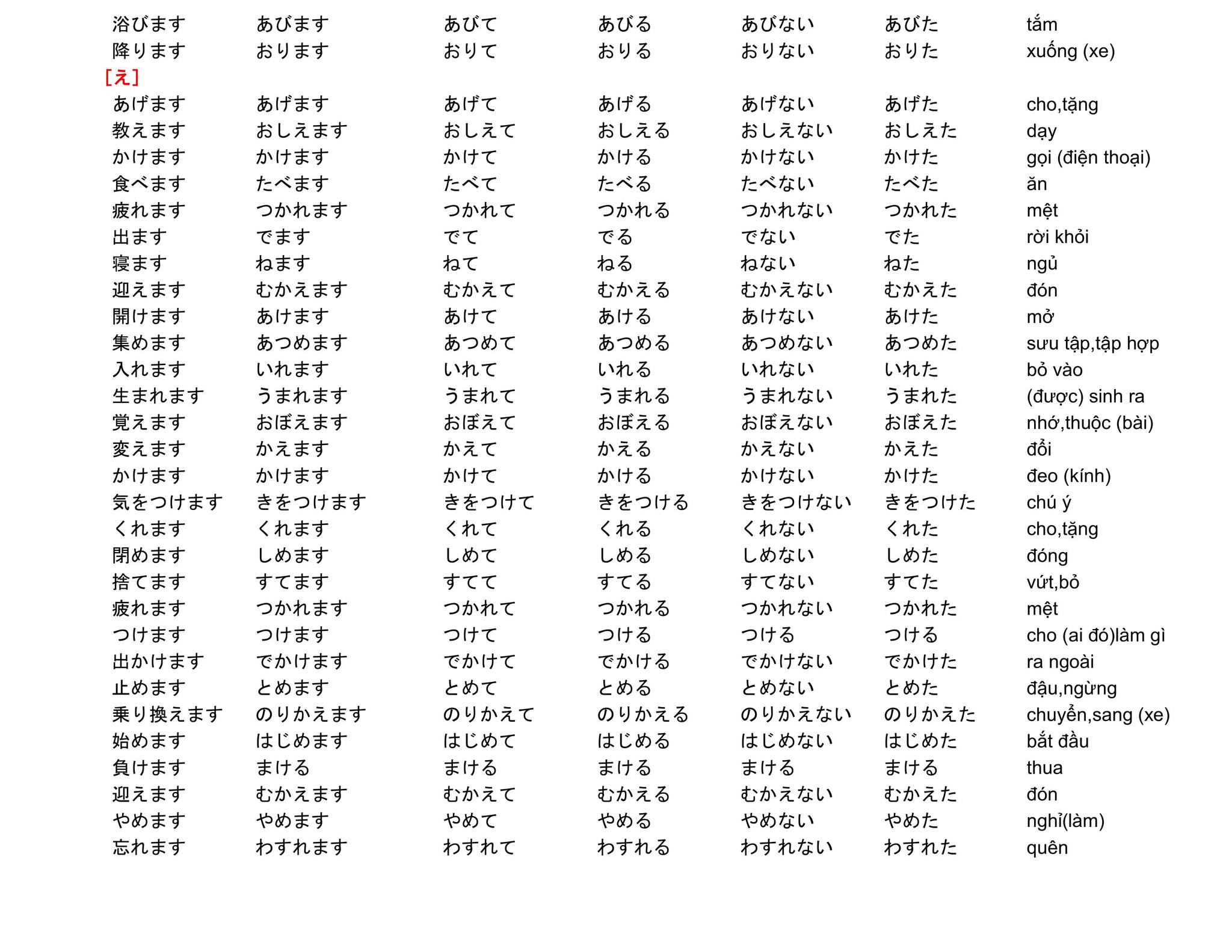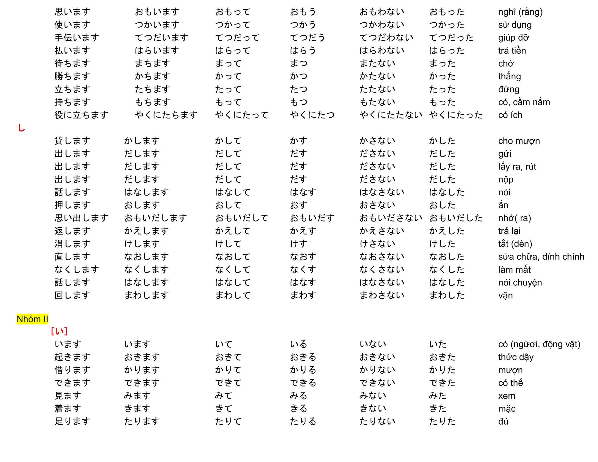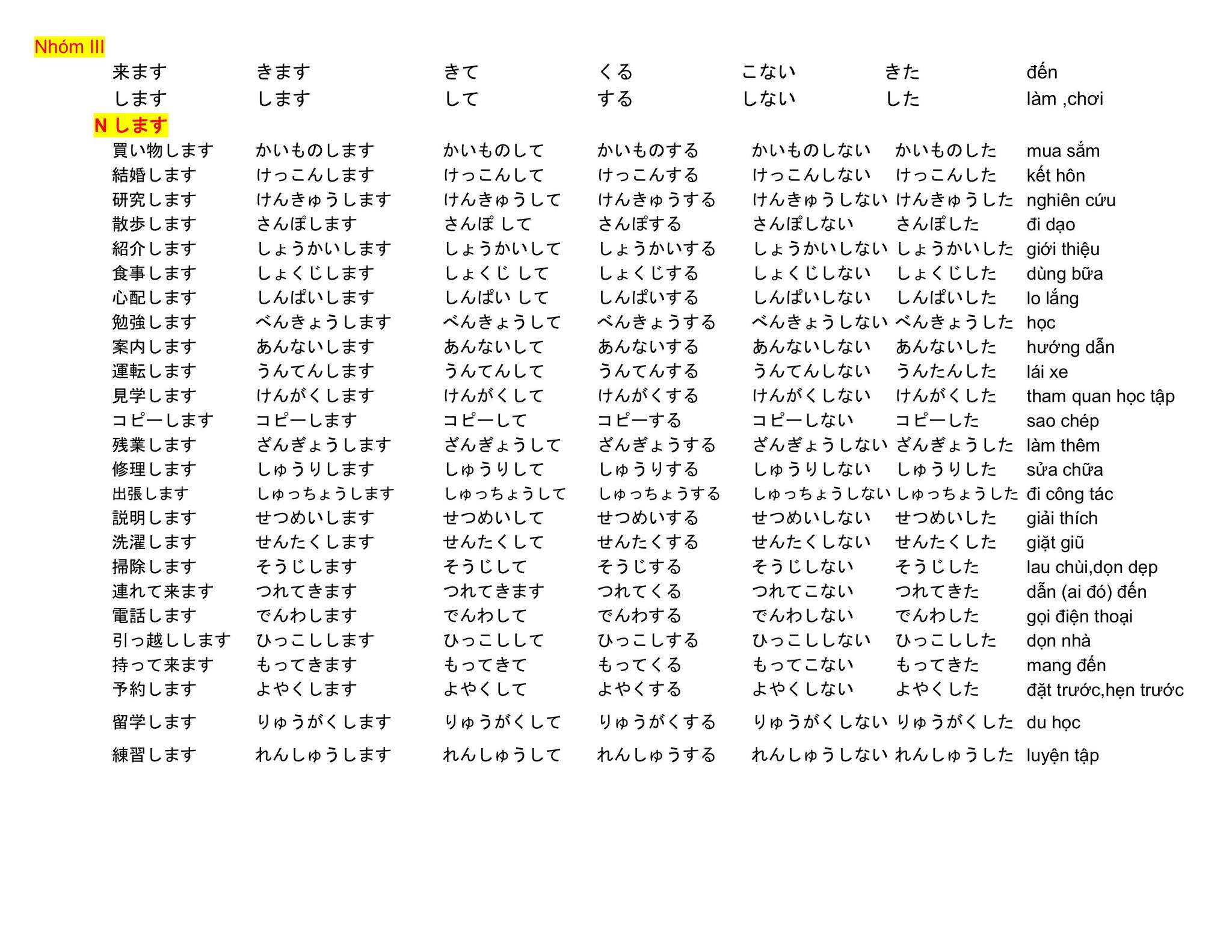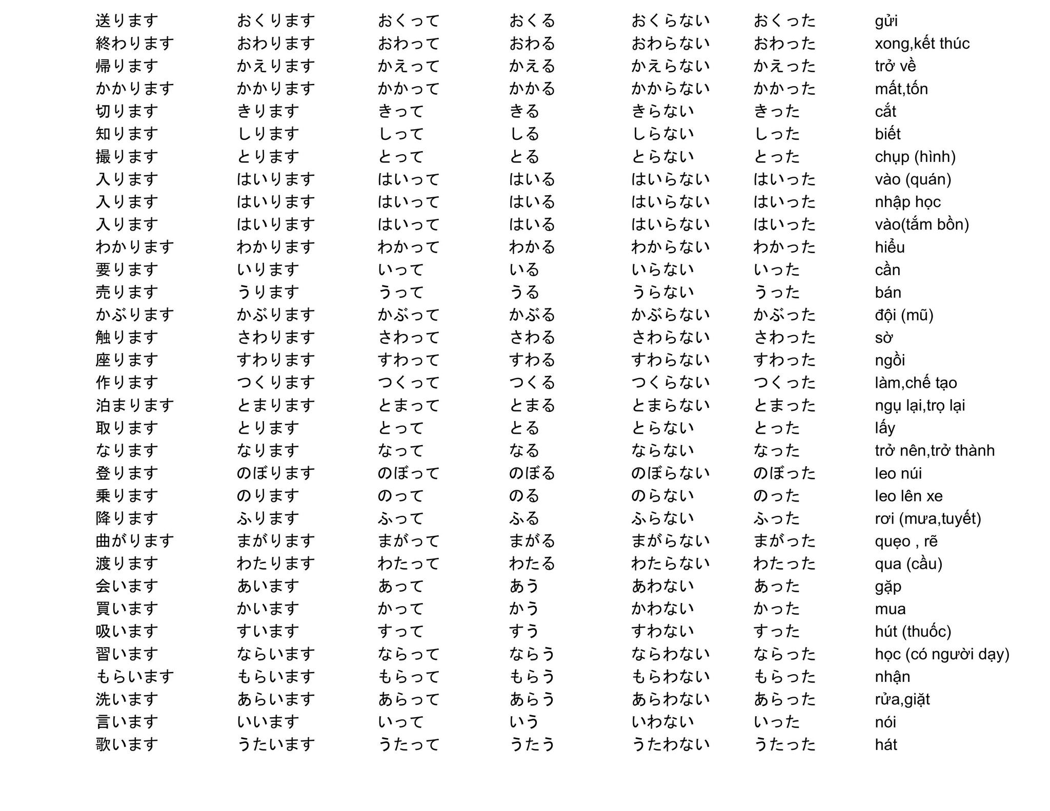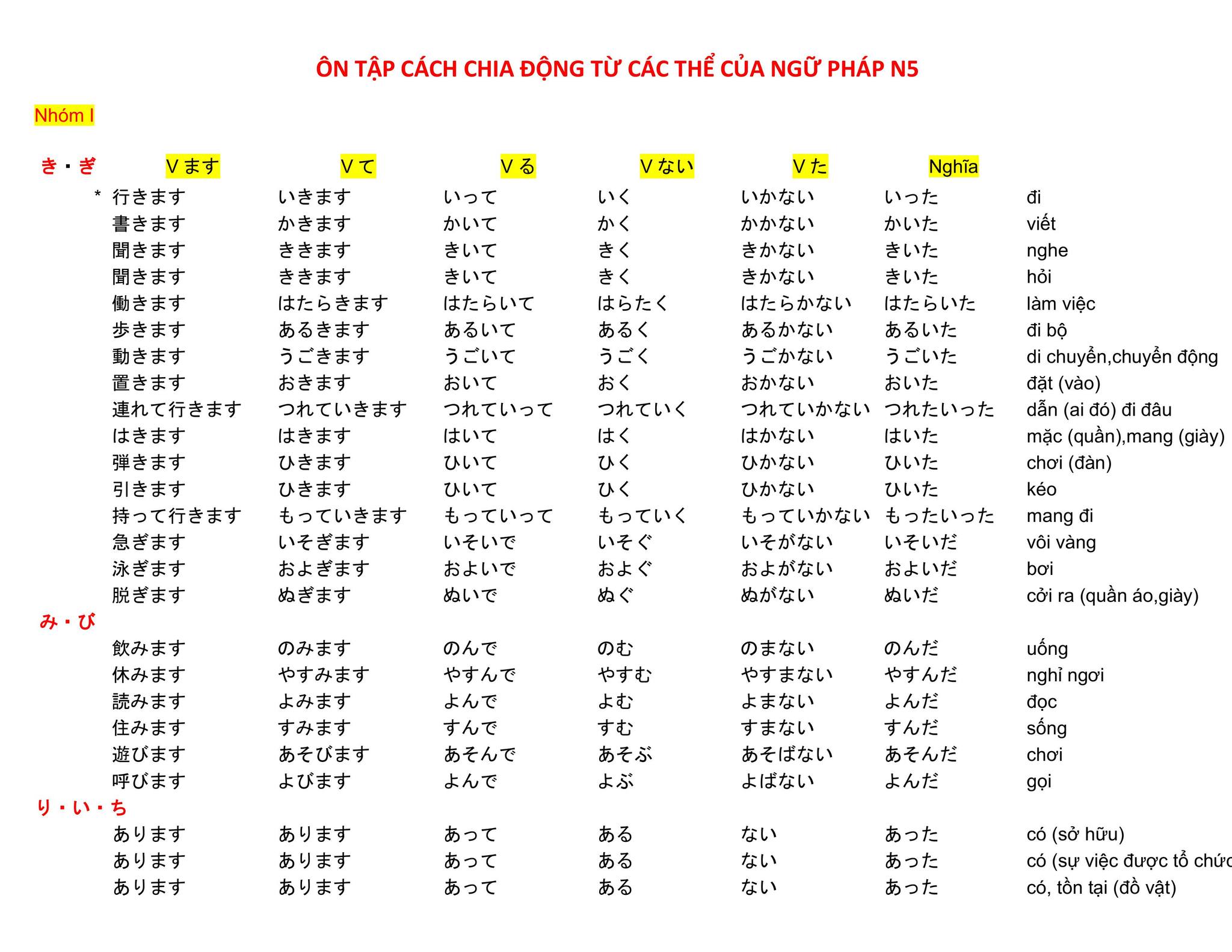 Ôn tập cách chia Động Từ các thể của ngữ pháp N5