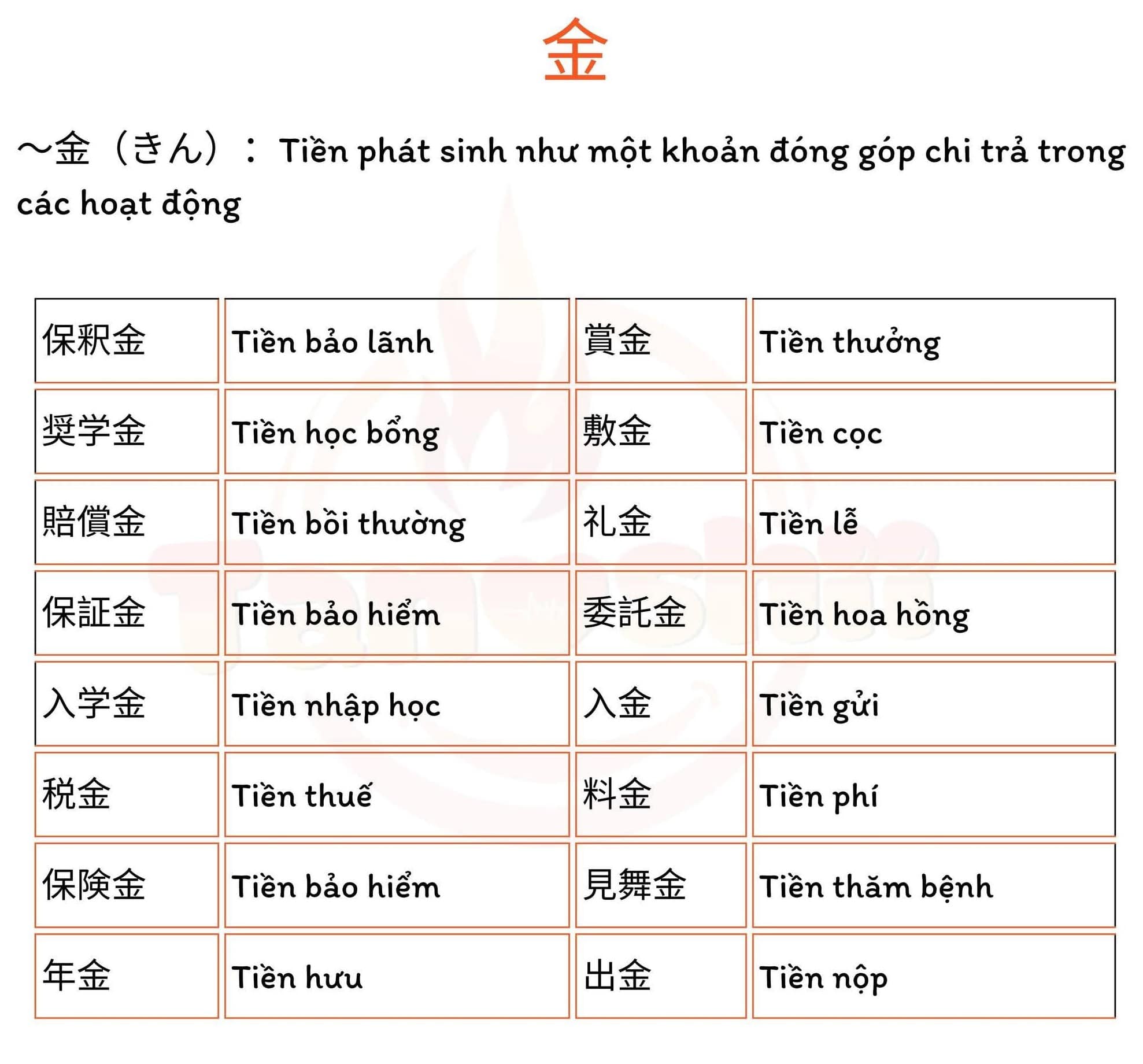(入学金、Tiền nhập học) (見舞金、Tiền thăm bệnh)