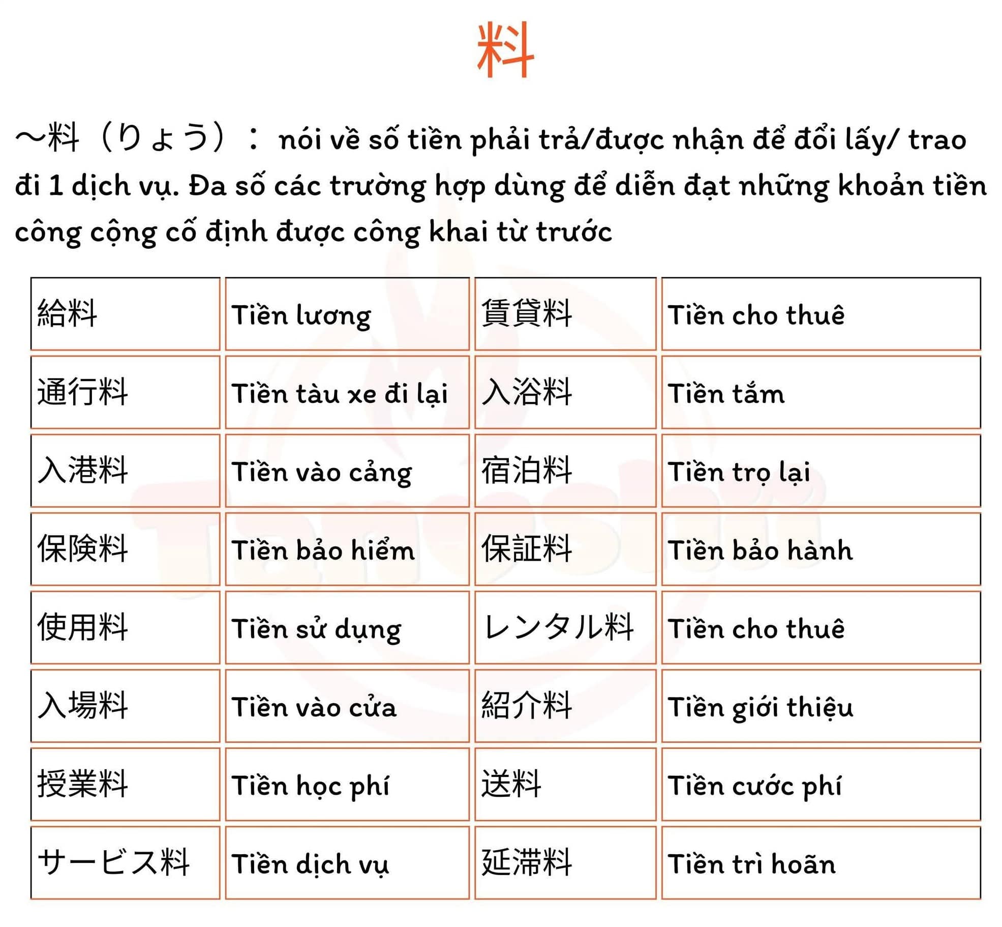 (賃金、Tiền lương cơ bản) (料金、Tiền phí)