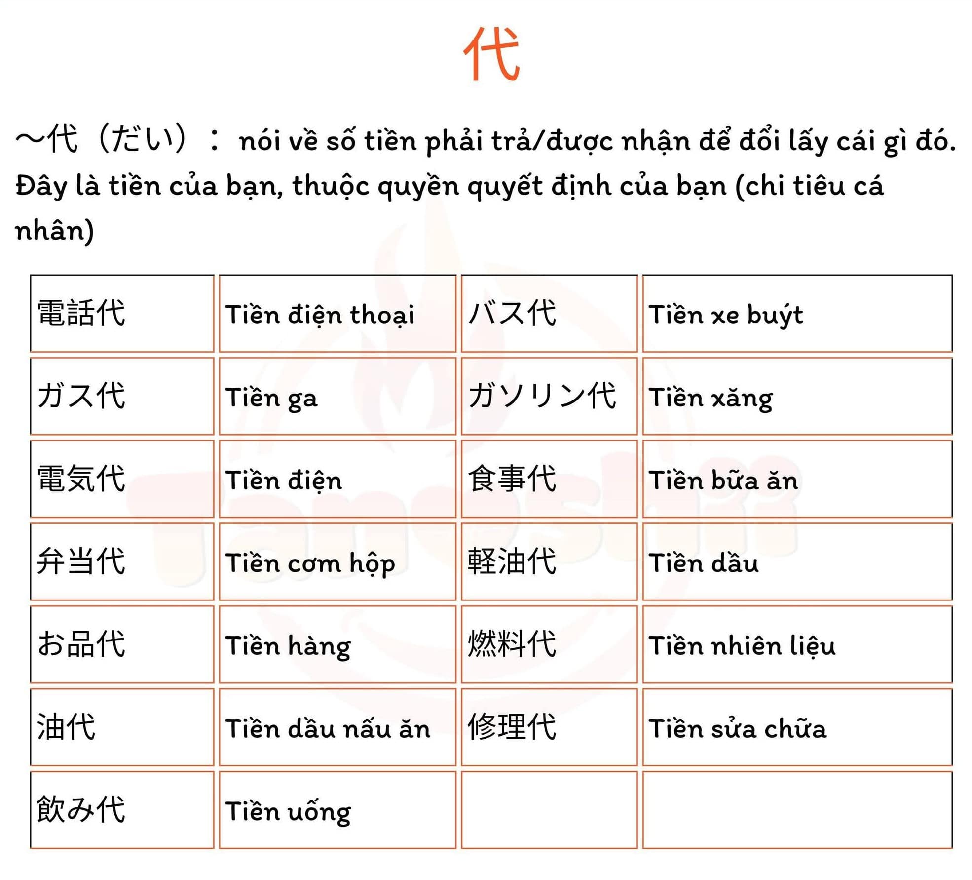 (電気代、Tiền điện) (バイト代、Tiền làm thêm)