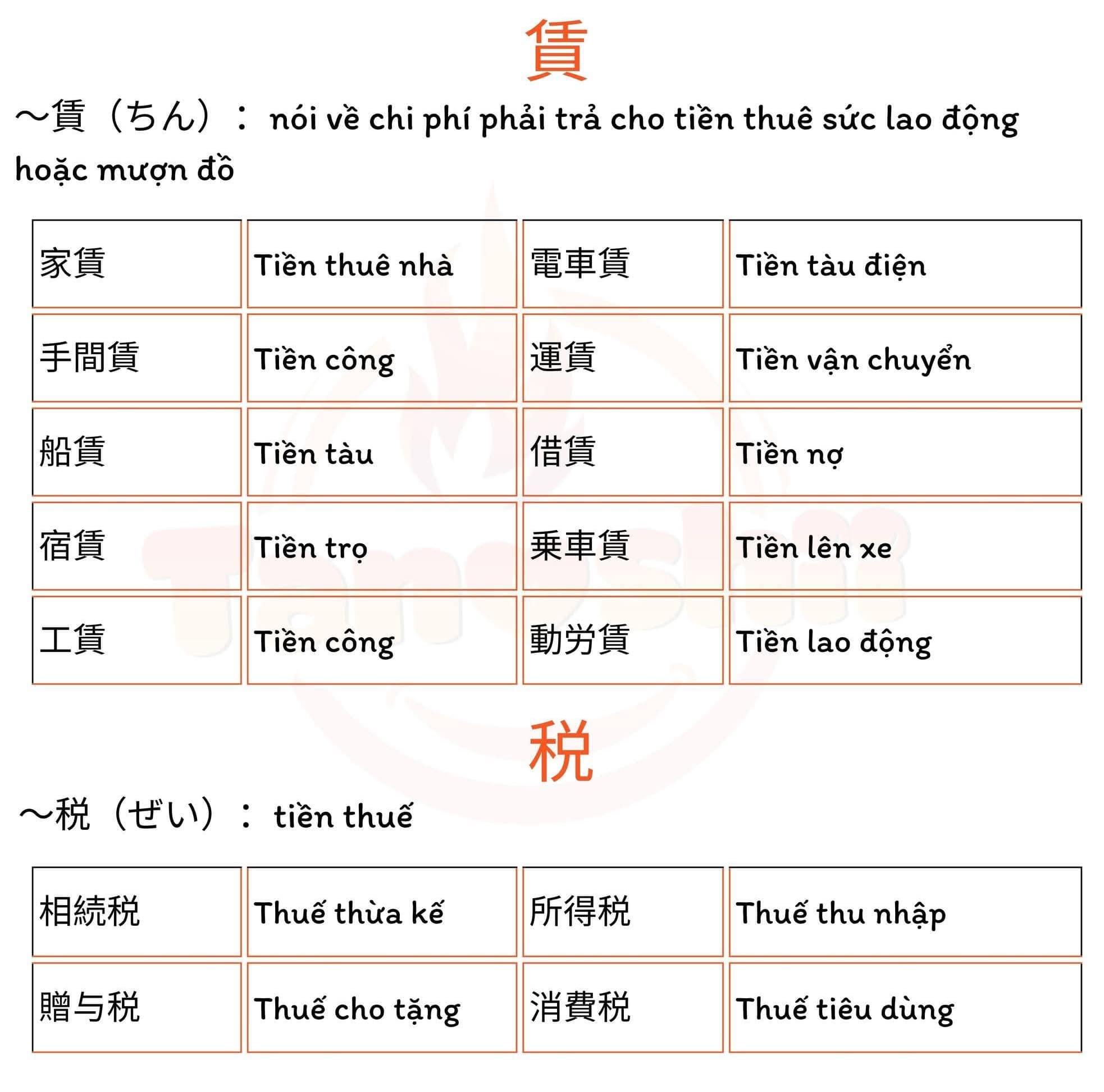 (税金、Tiền thuế) (出金、Tiền nộp)