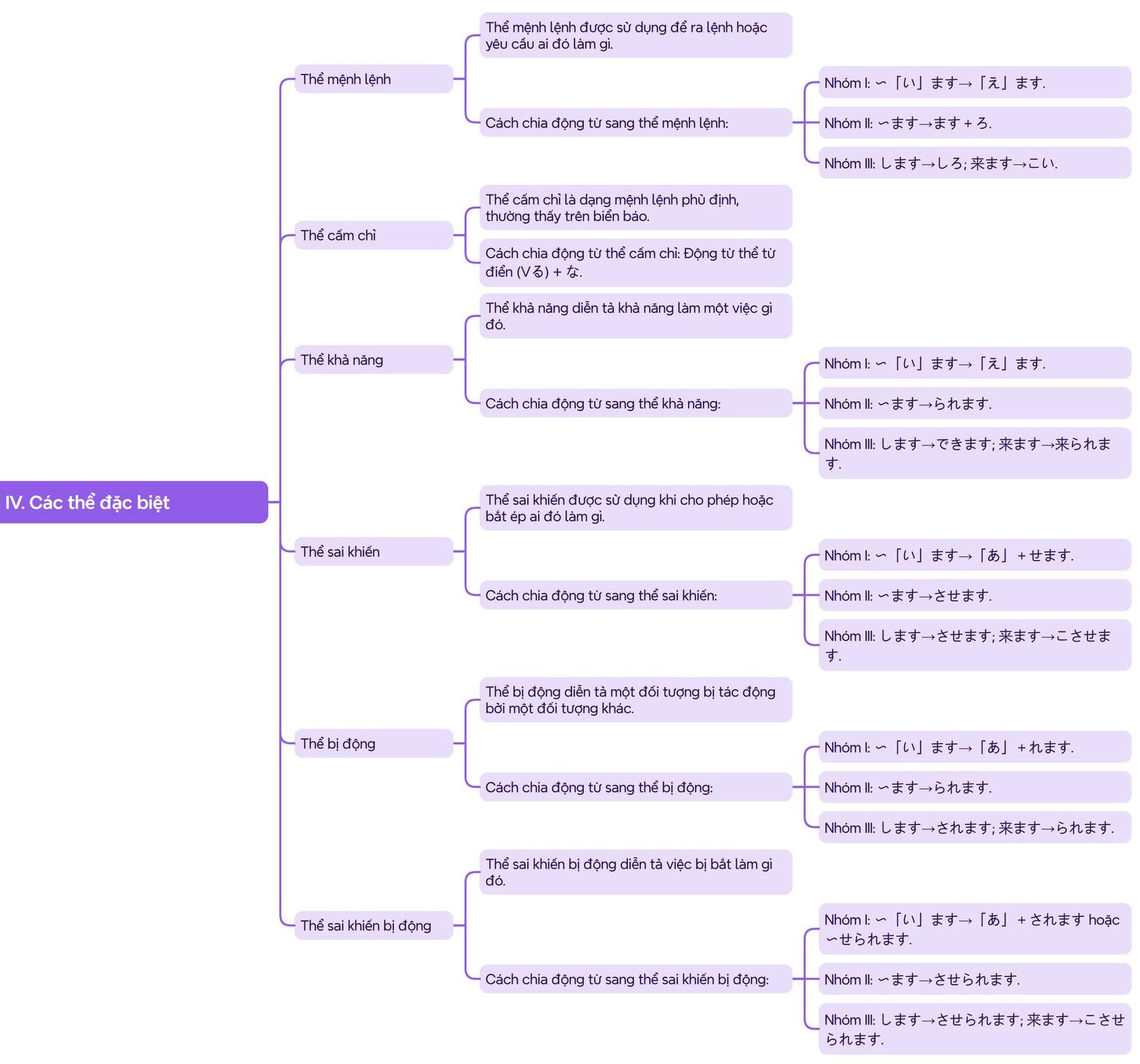 Sơ đồ chia các Thể Động Từ trong tiếng Nhật