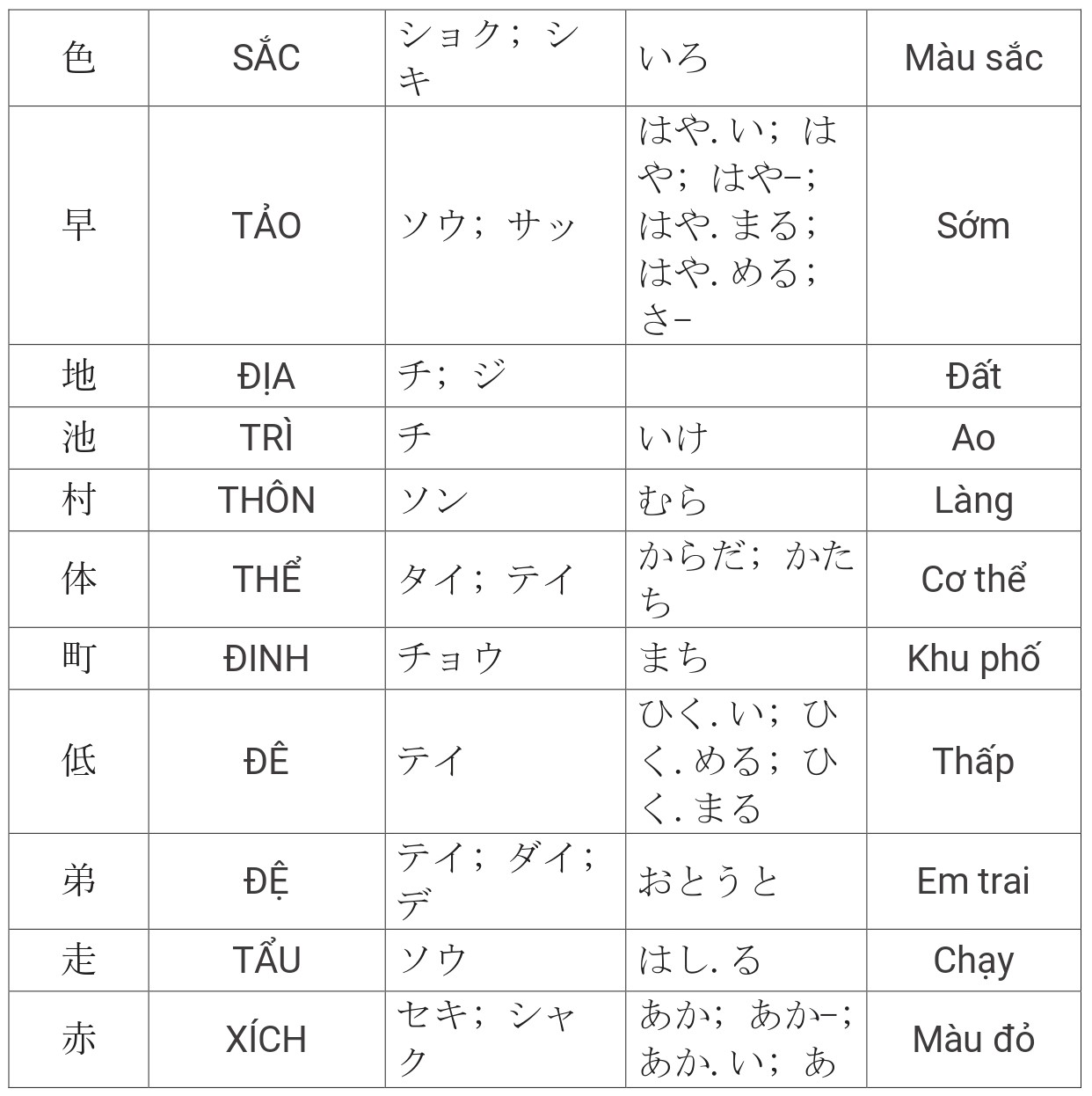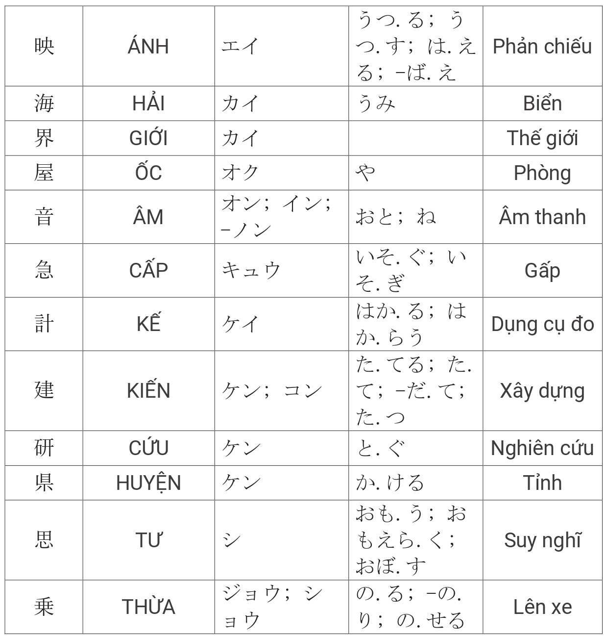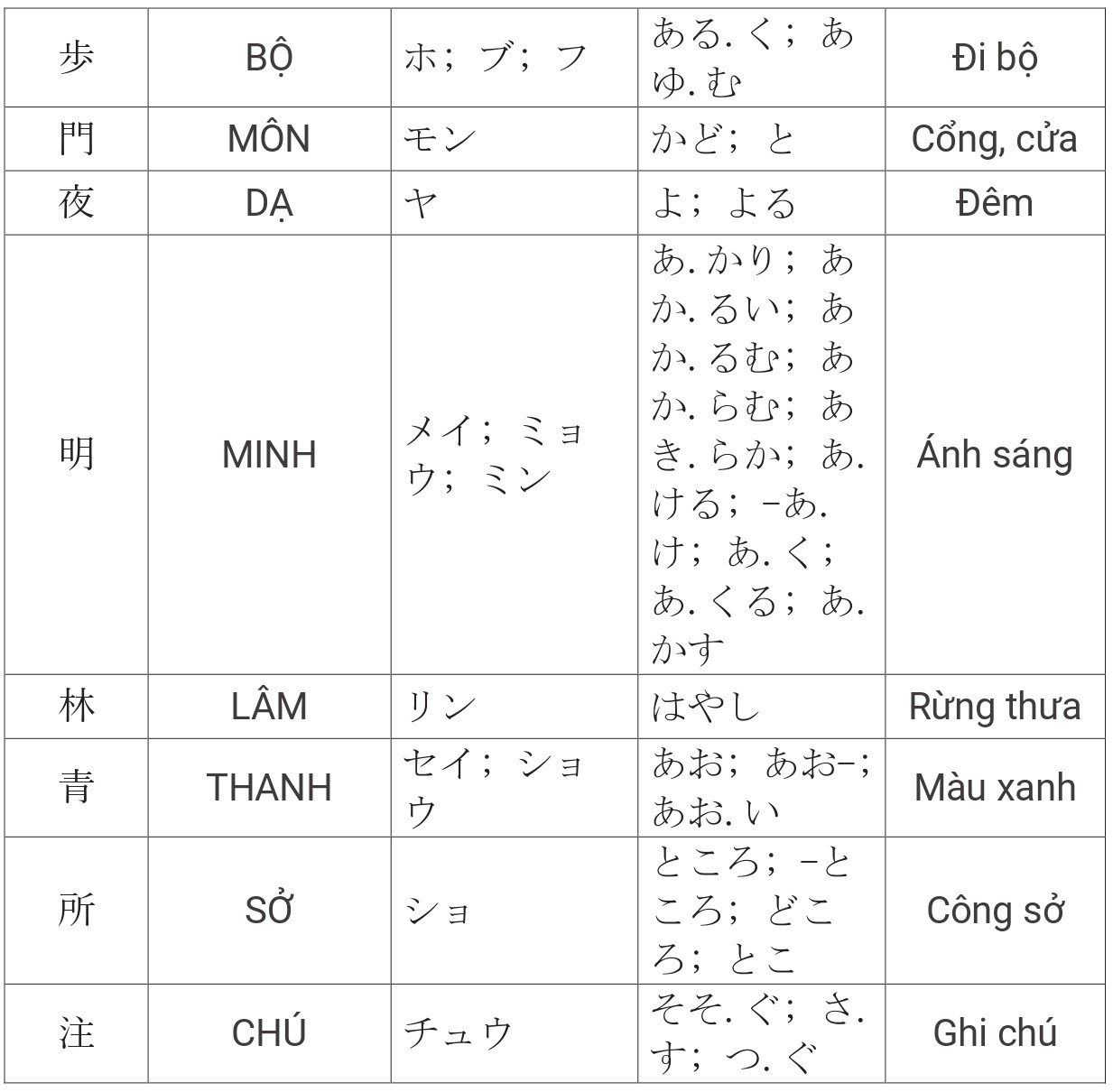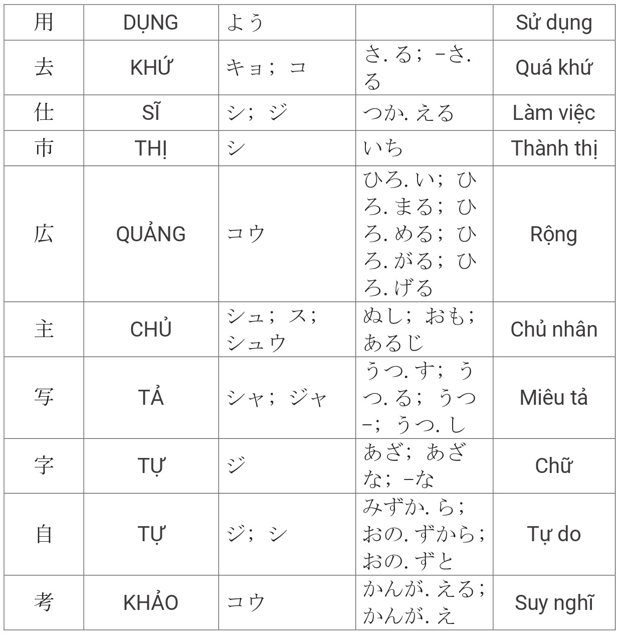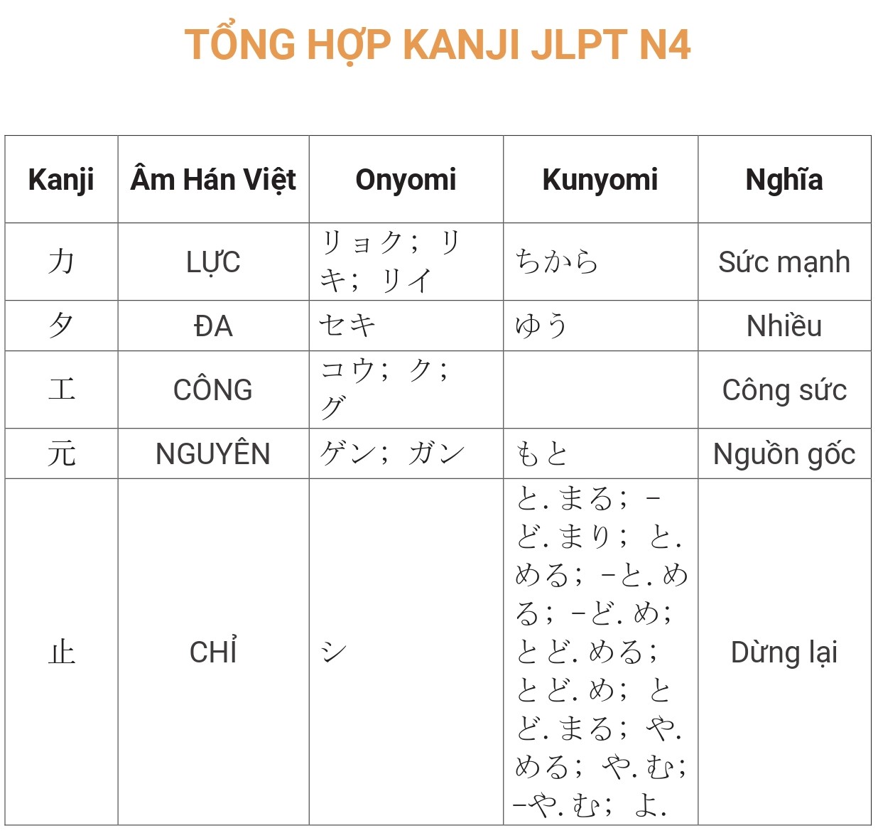 Tổng hợp Kanji JLPT N4