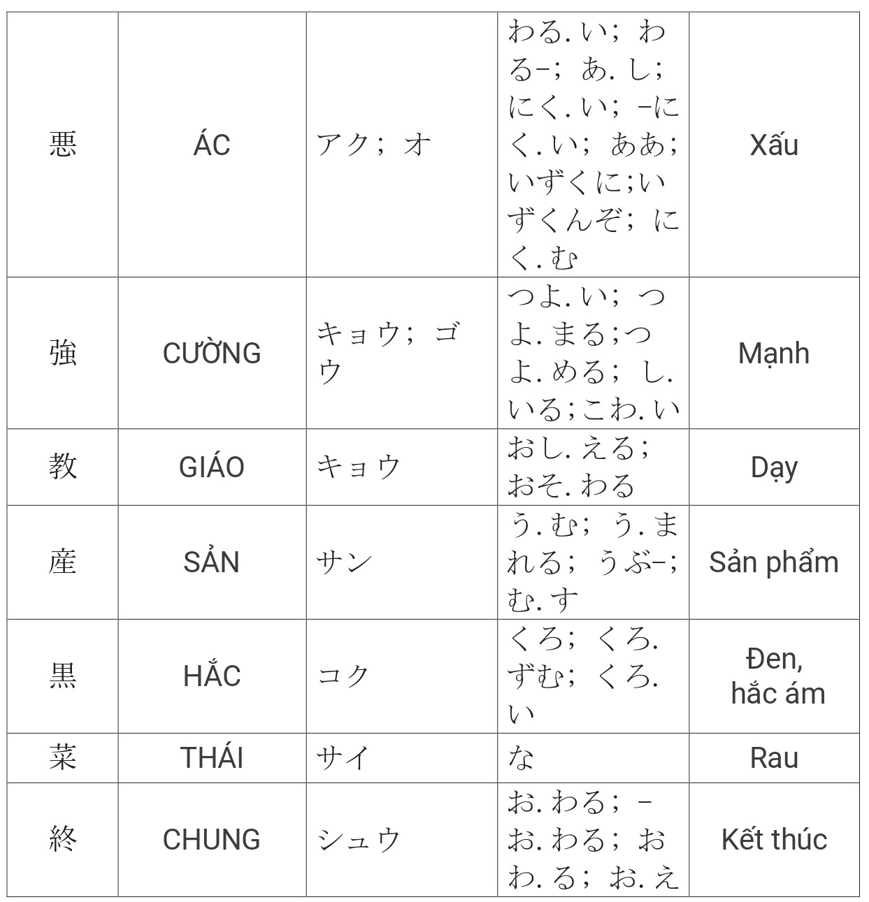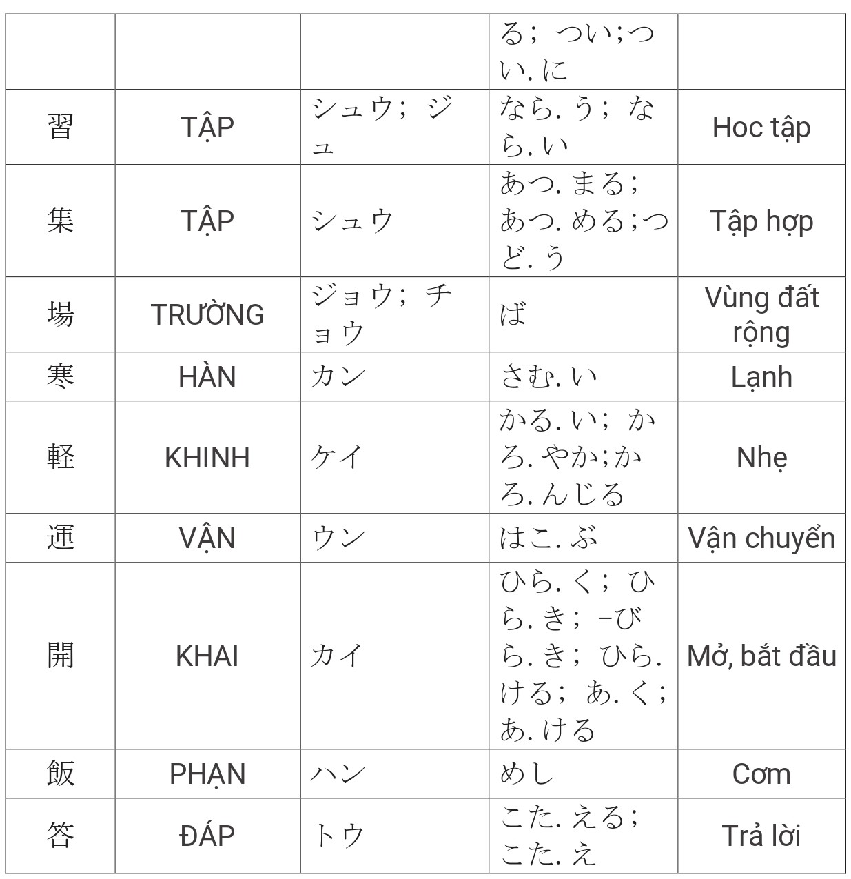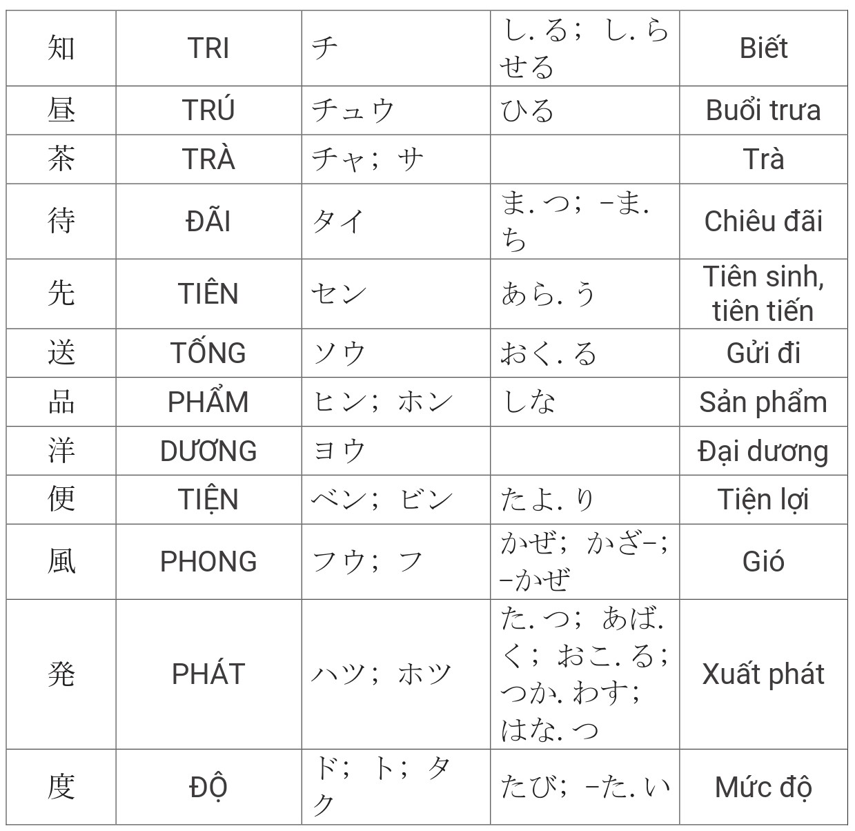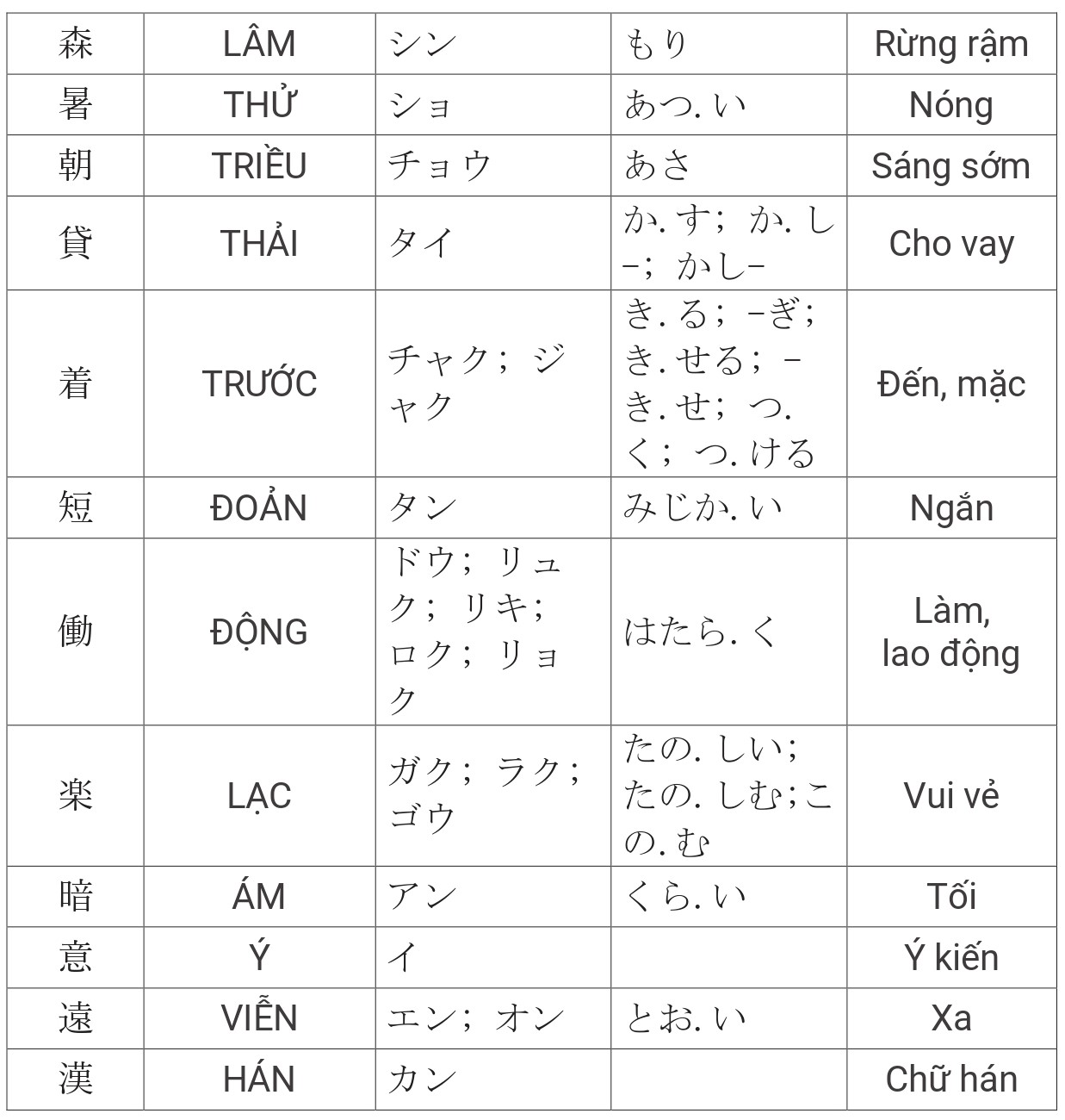 Tổng hợp Kanji JLPT N4