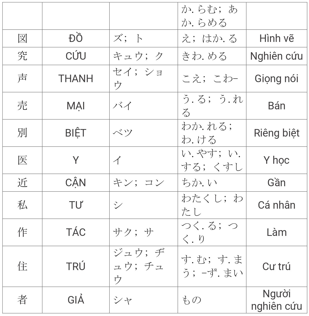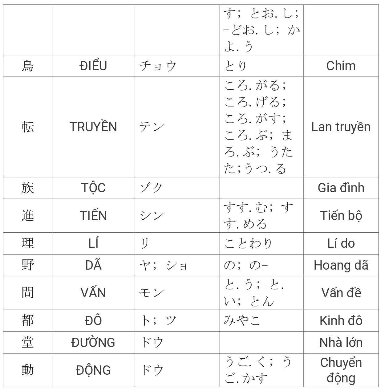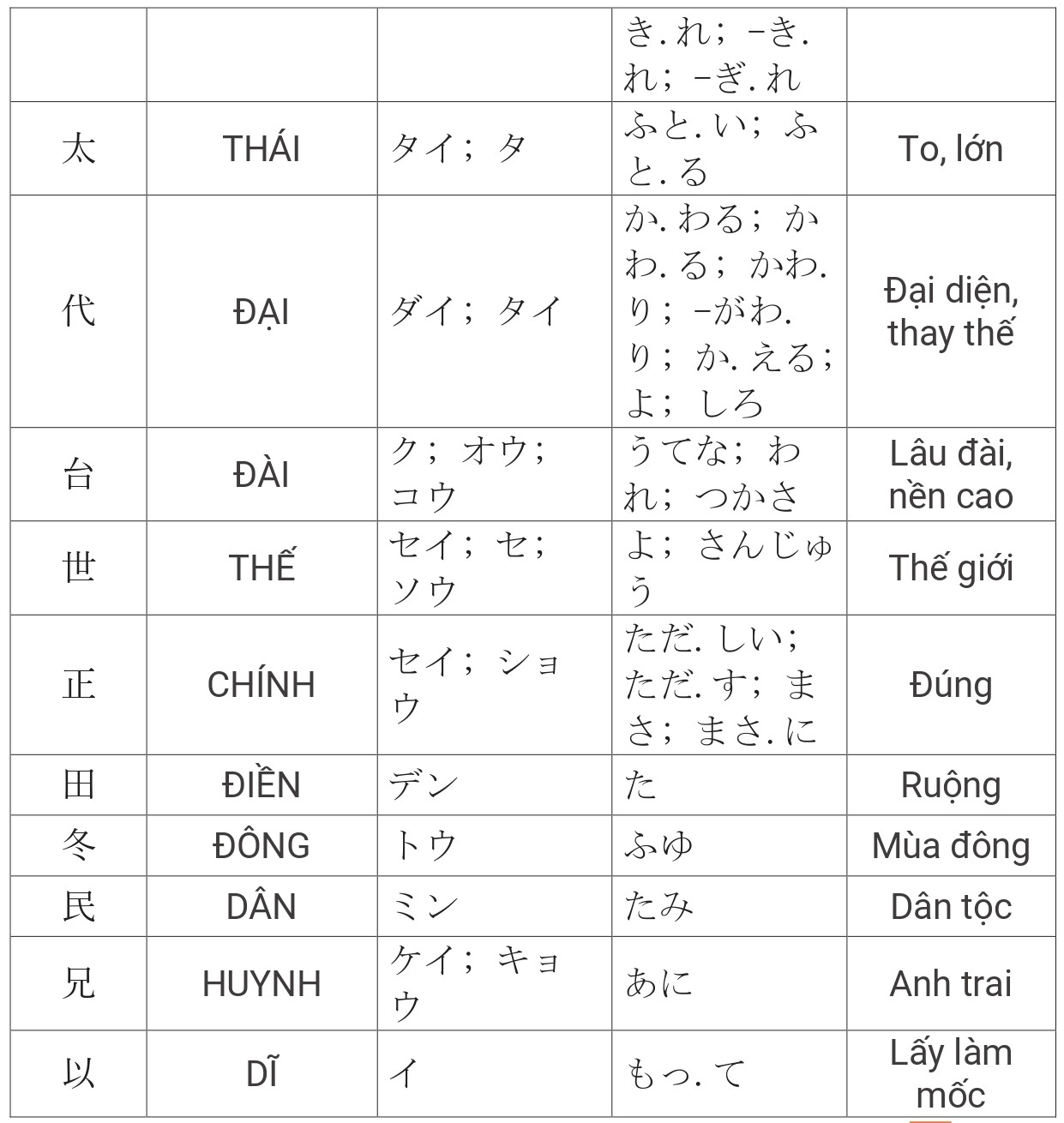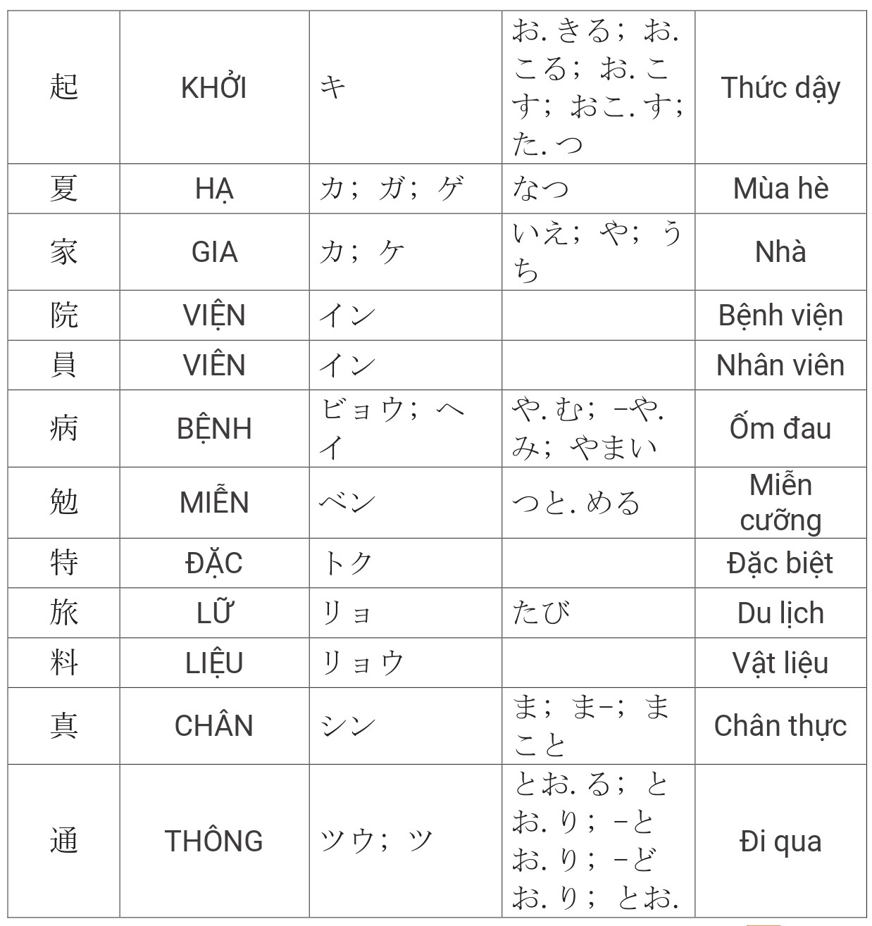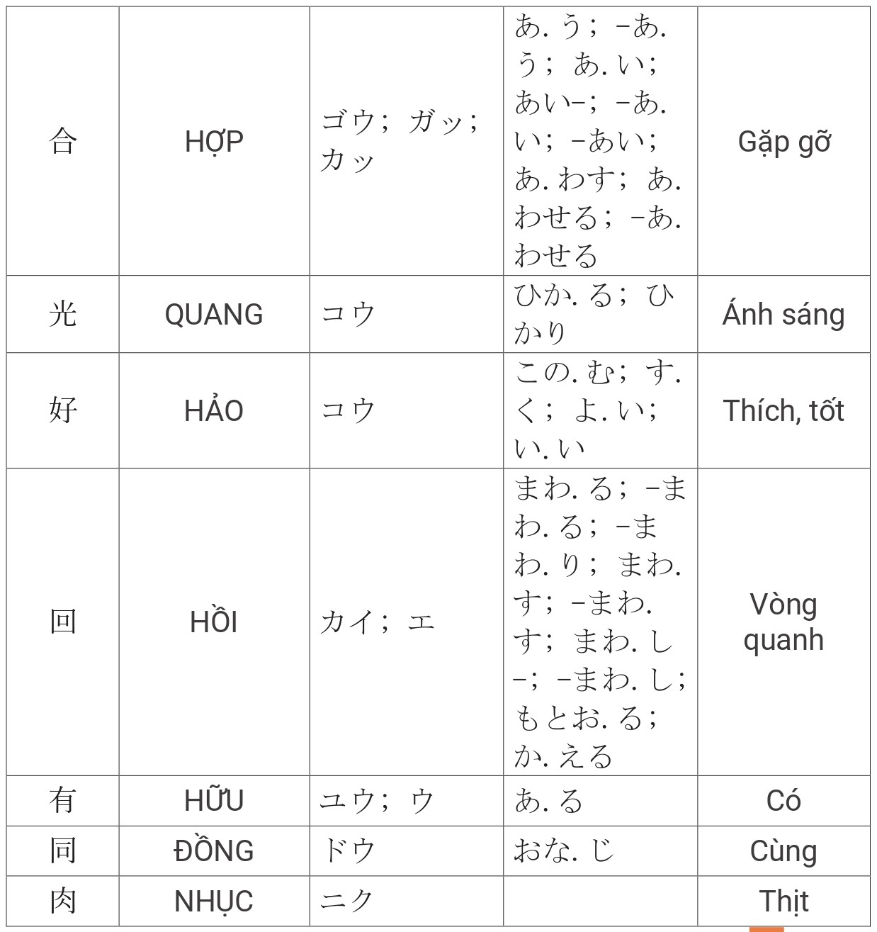 Tổng hợp Kanji JLPT N4