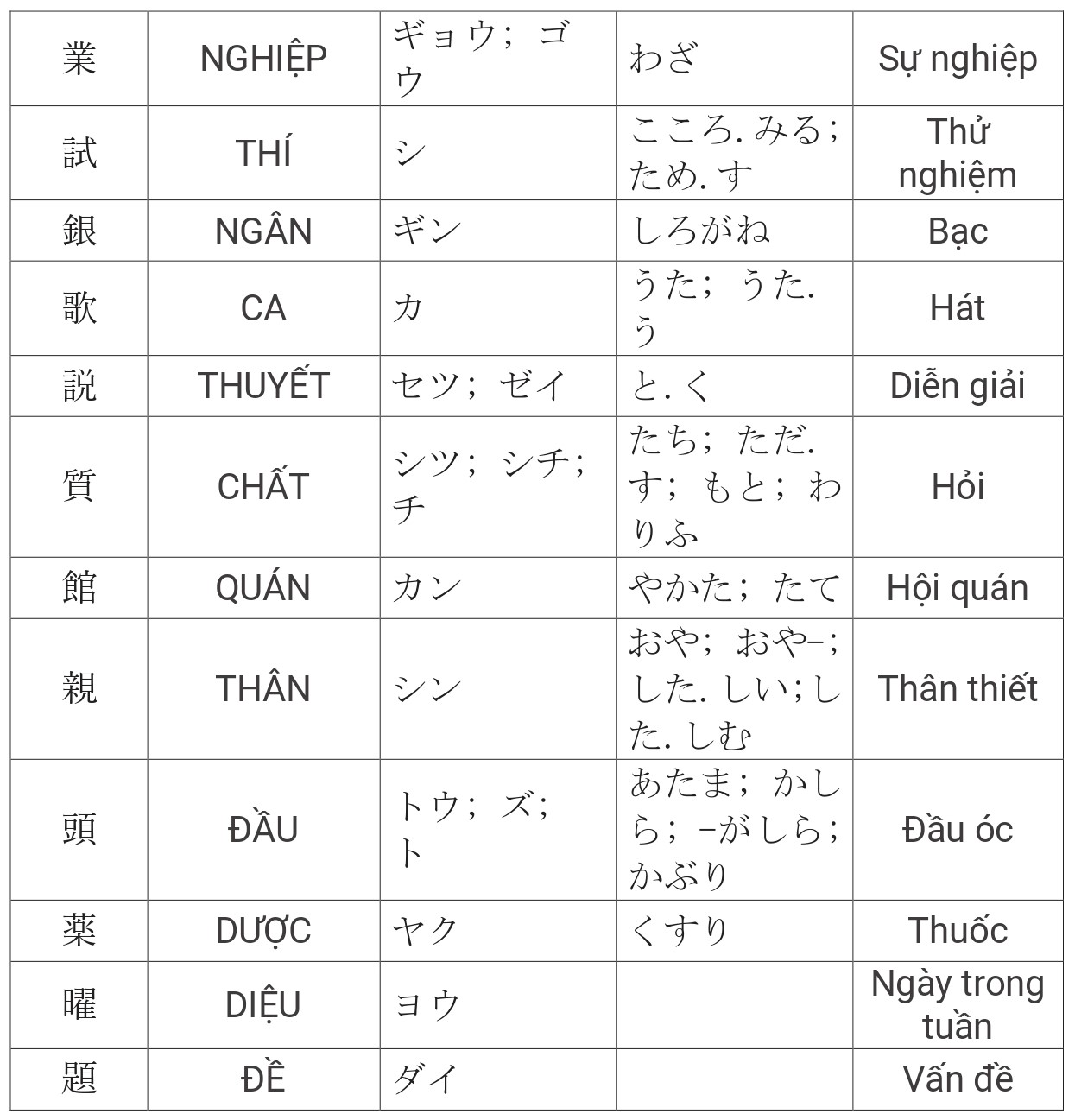 510 Câu trắc nghiểm Kanji N4 có đáp án