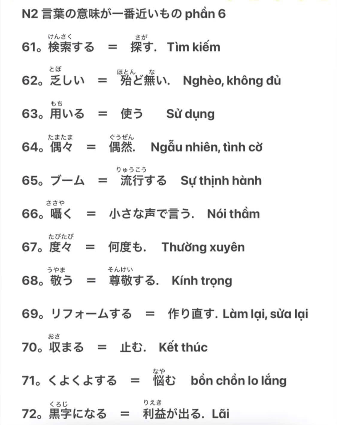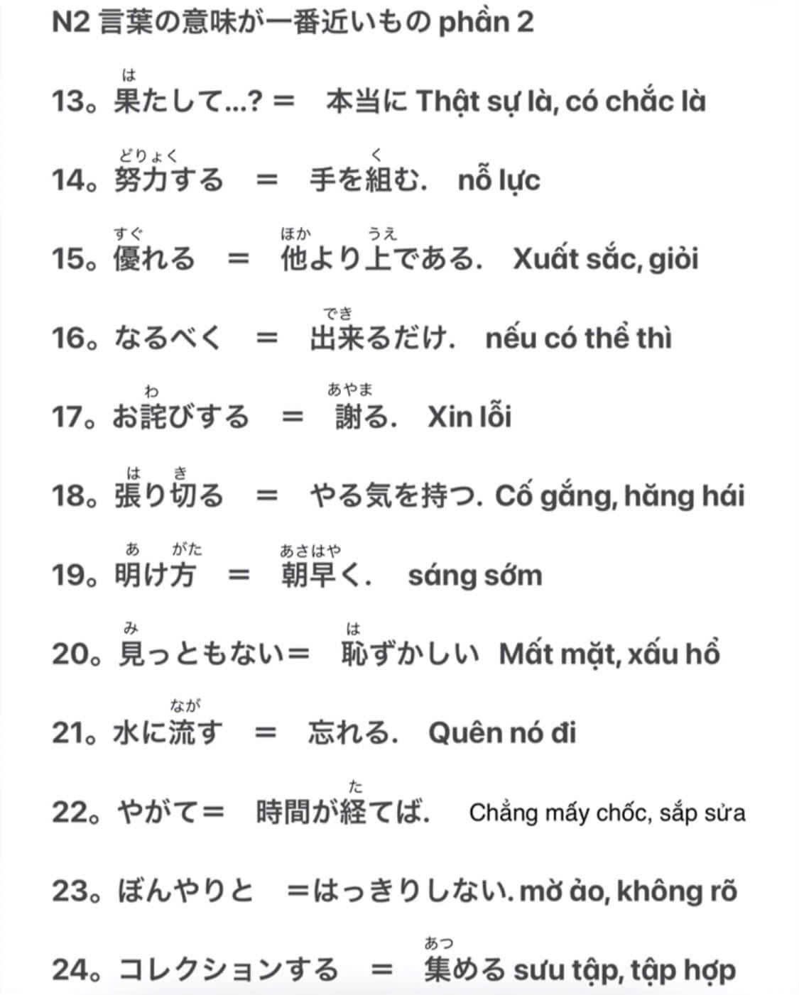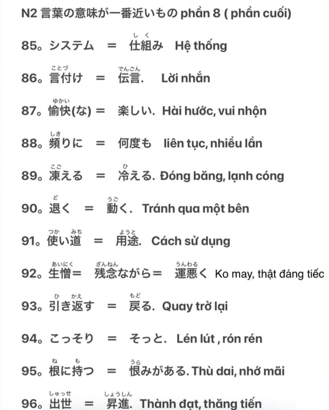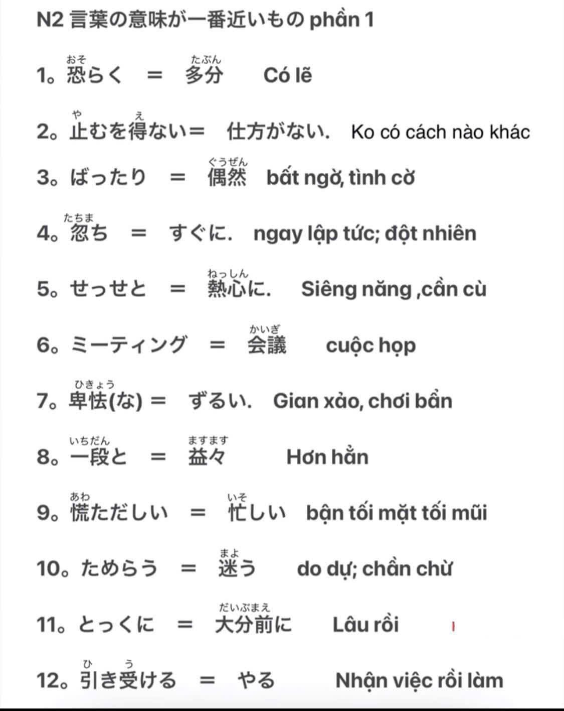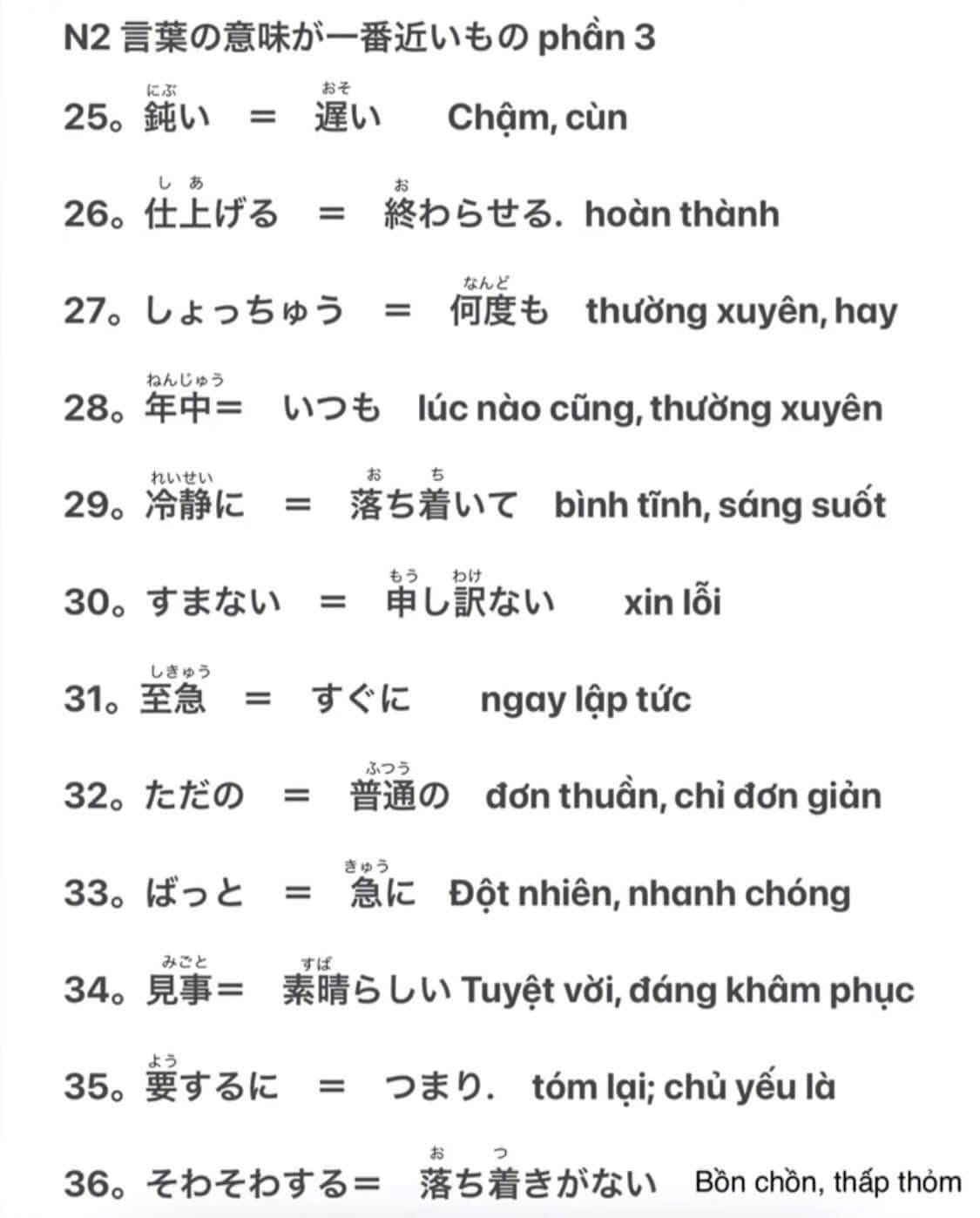 Tổng hợp từ đồng nghĩa trong JLPT N2