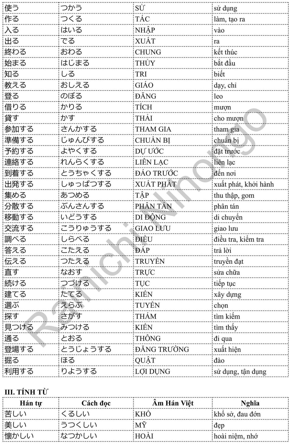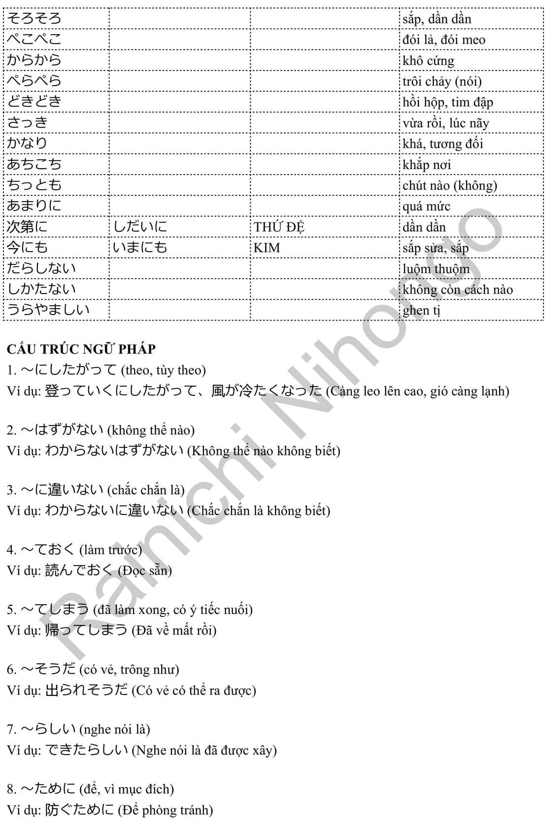 Tổng hợp Từ Vựng N3 PDF