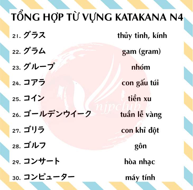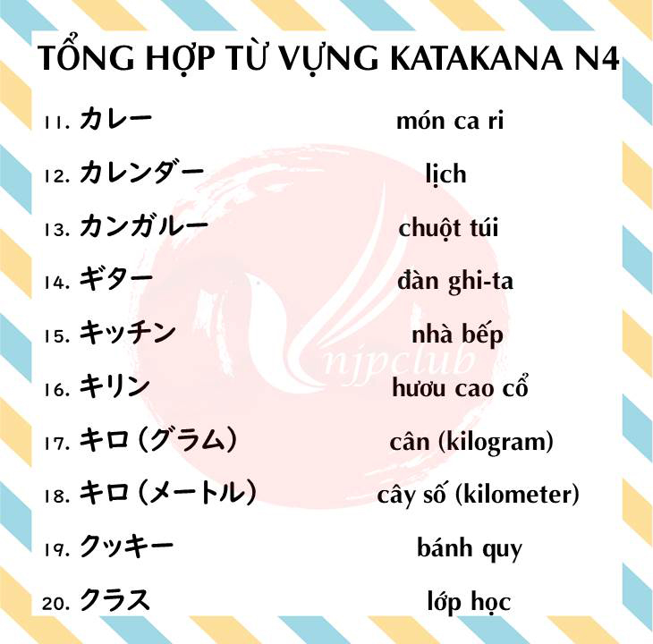 Tổng hợp từ vựng Katakana N4 hay xuất hiện trong đề thi JLPT
