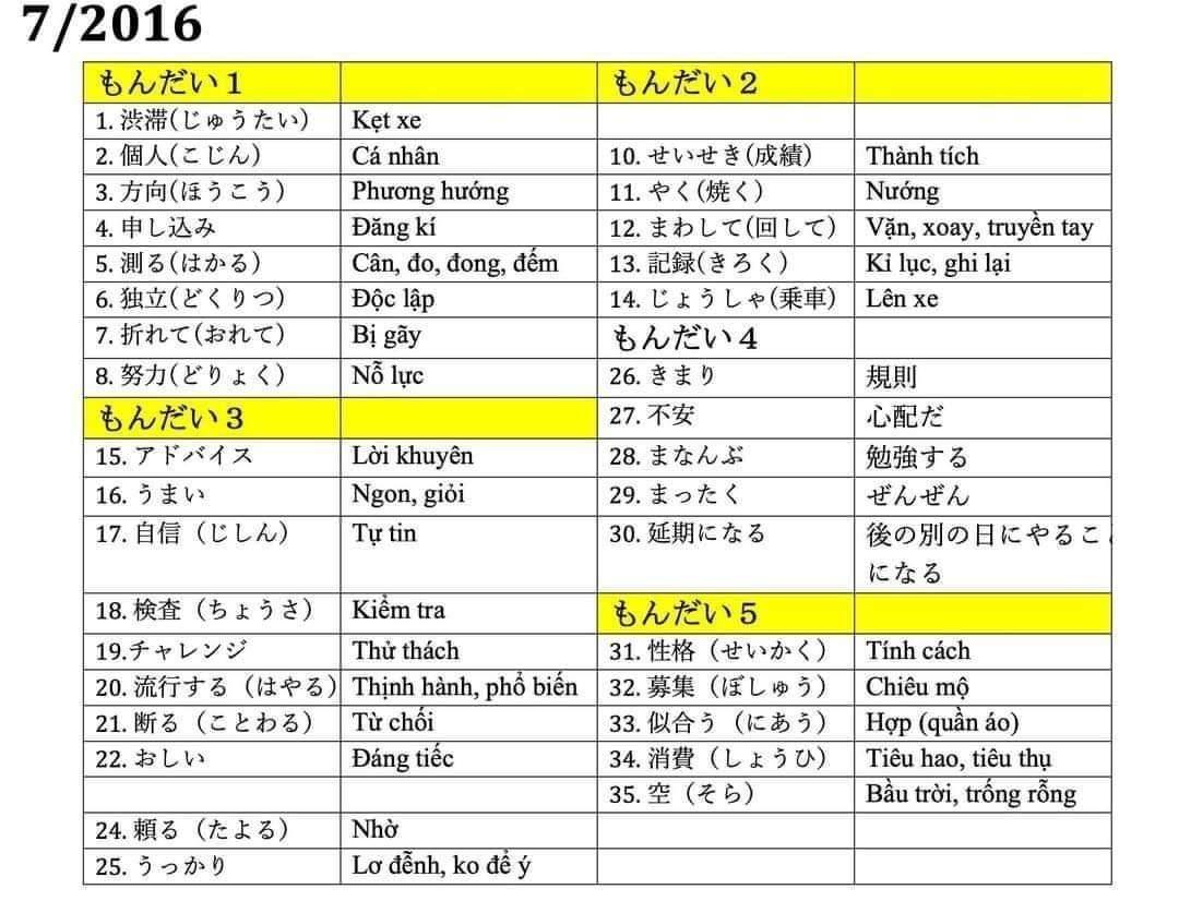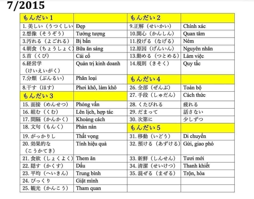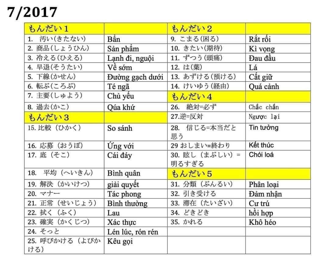 Từ vựng tiếng Nhật N3 đã từng xuất hiện trong JLPT (7/2013-12/2017)