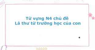 Từ vựng N4 chủ đề Lá thư từ trường học của con Bài đọc: 子どもの学校からの手紙 Dịch: Sena: Alo, tôi là Sena đây. Kimura: À, chào chị Sena. Cảm ơn chị lúc nào cũng giúp đỡ chúng tôi. Sena: Hồi nãy con tôi mang một lá thư từ trường về. Nhưng …