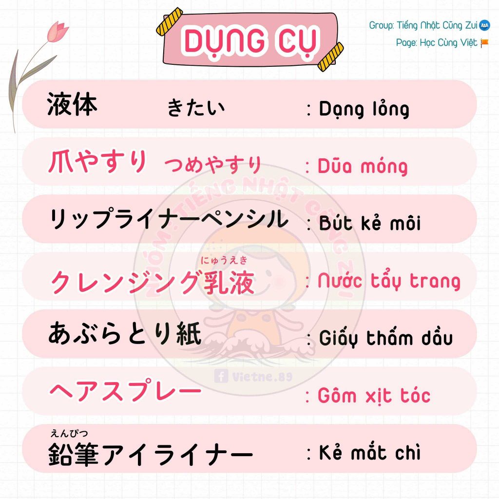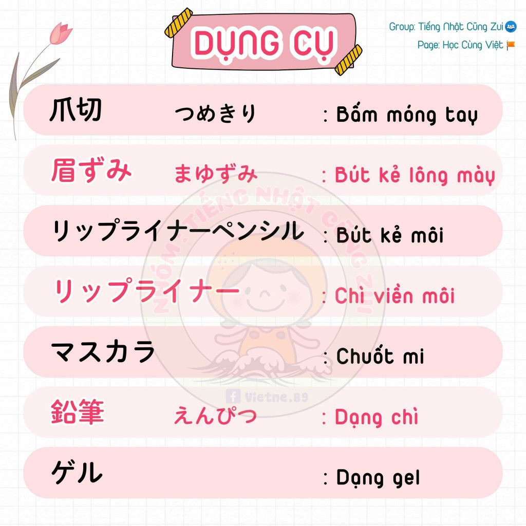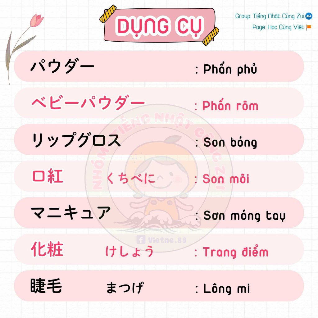 Trong bài này chúng ta sẽ cùng học những từ vựng chủ đề Makeup, làm đẹp trong tiếng Nhật.