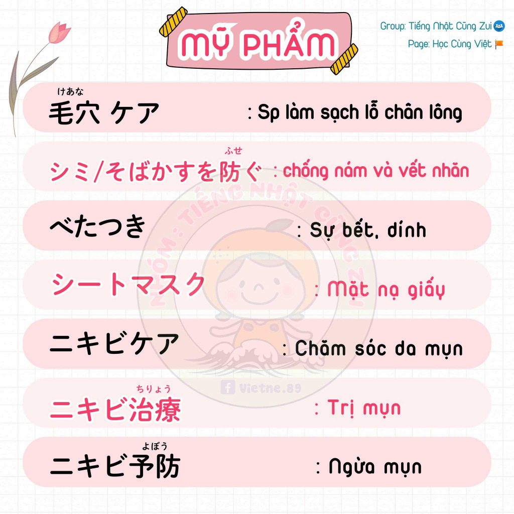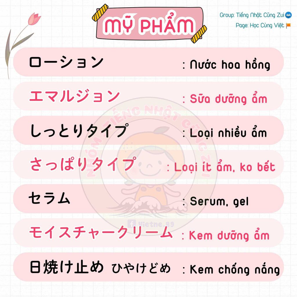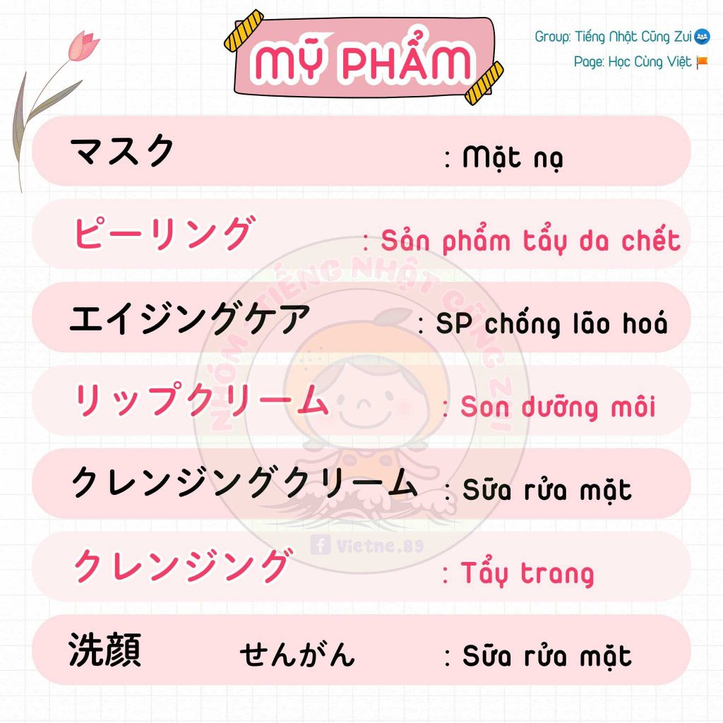 Từ vựng tiếng Nhật về mỹ phẩm