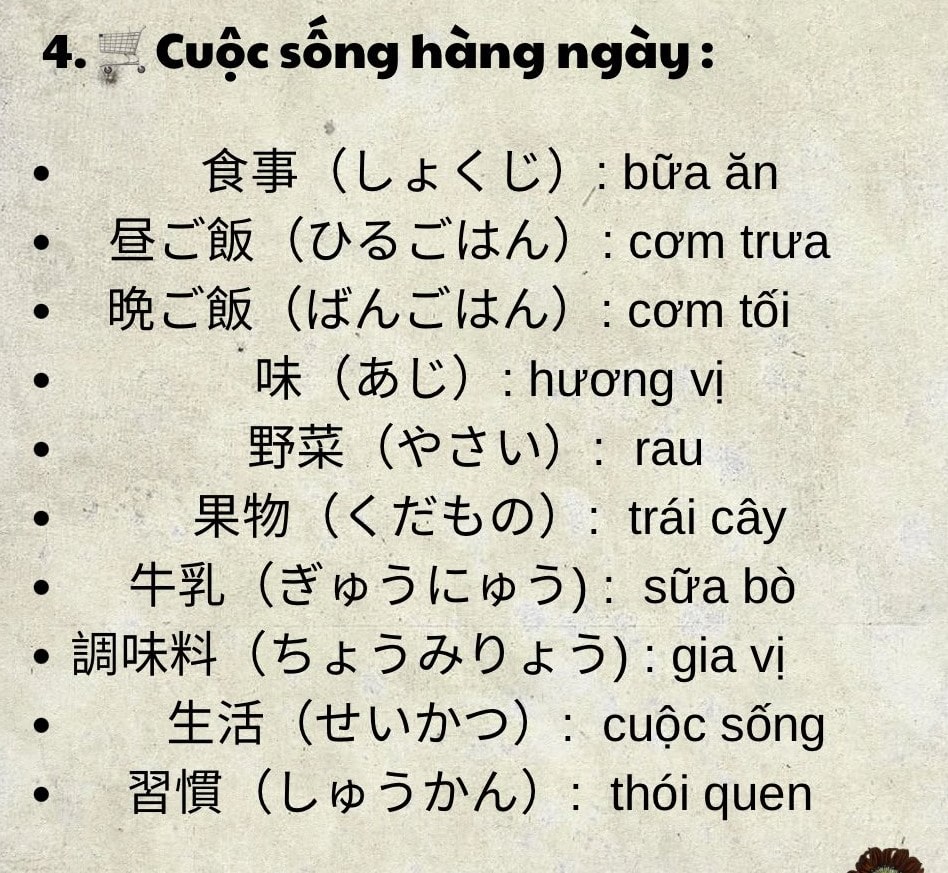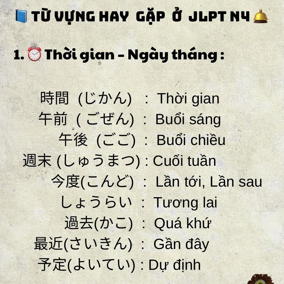 Từ vựng tiếng Nhật hay gặp trong JLPT N4