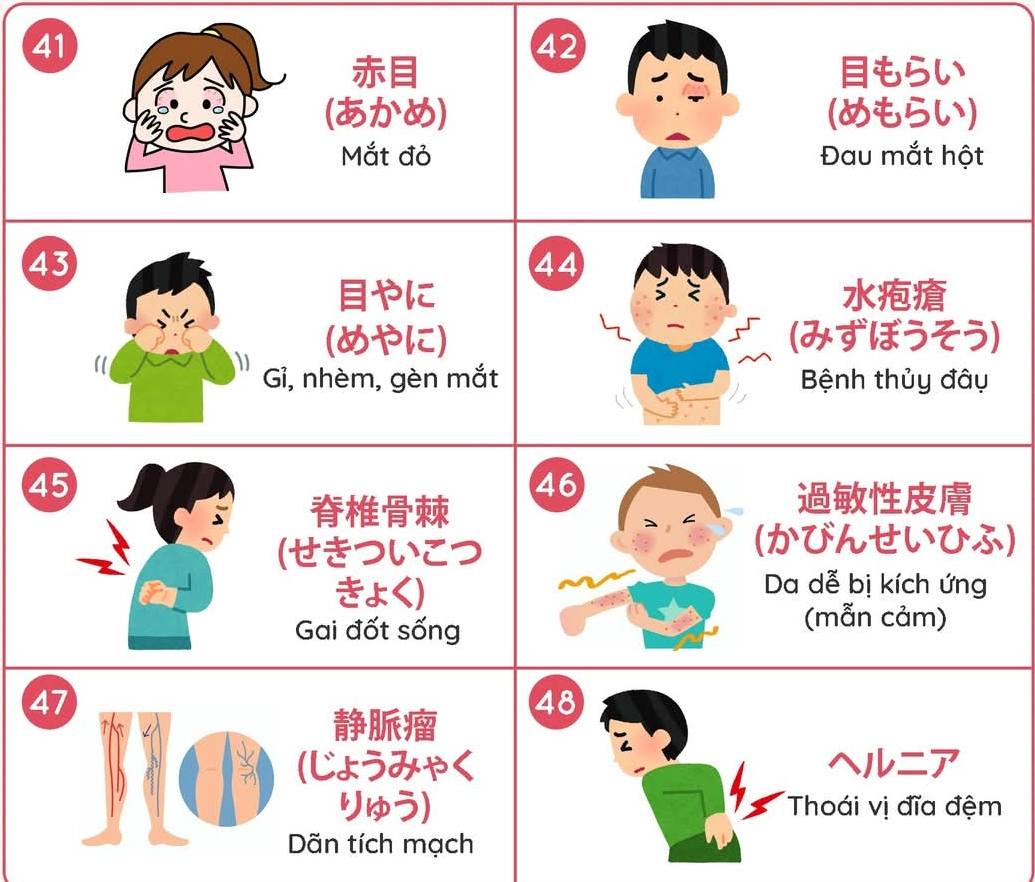 Từ vựng tiếng Nhật về những bệnh thường gặp trong tiếng Nhật.