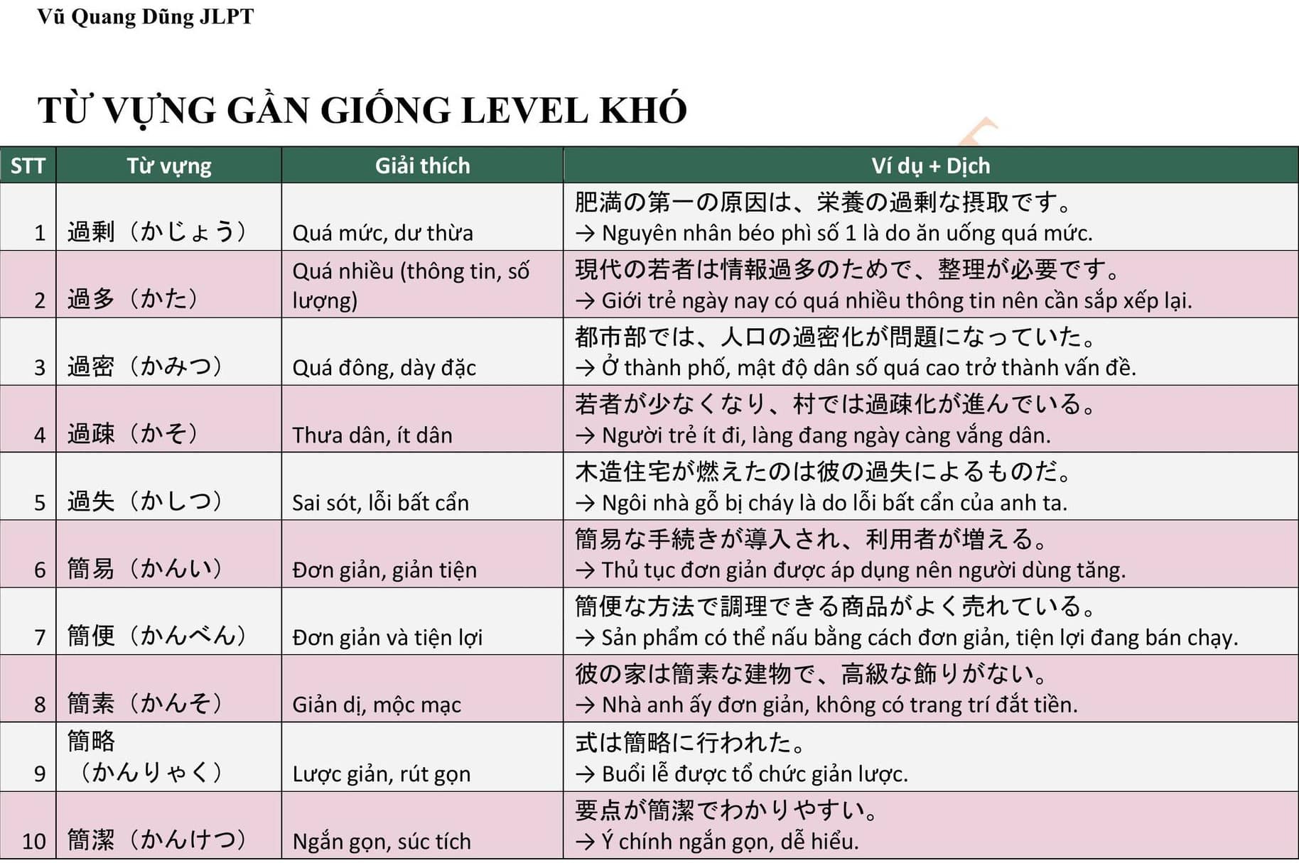 Cùng học những từ vựng N1-N2 khó dễ bị nhầm lẫn.