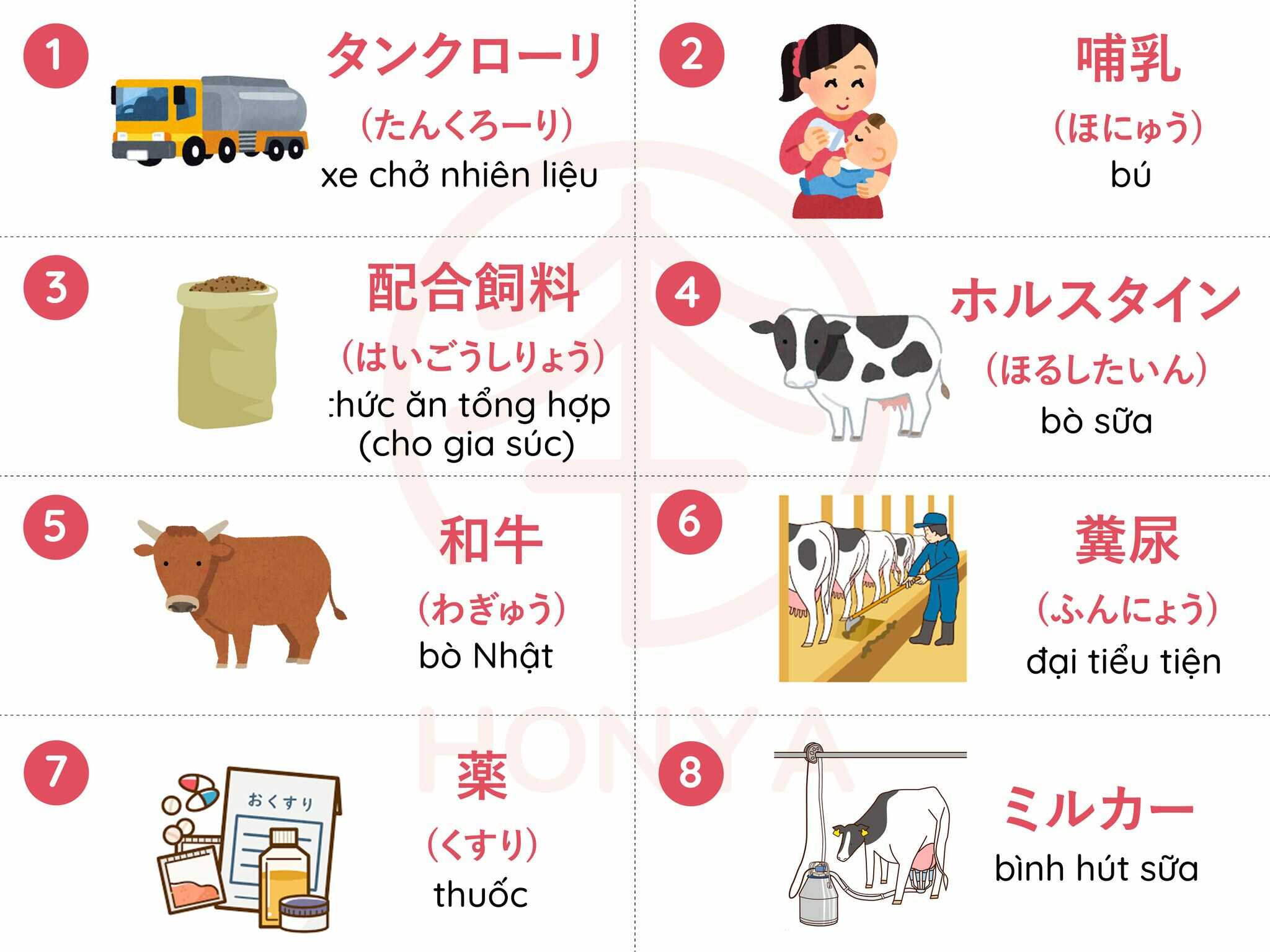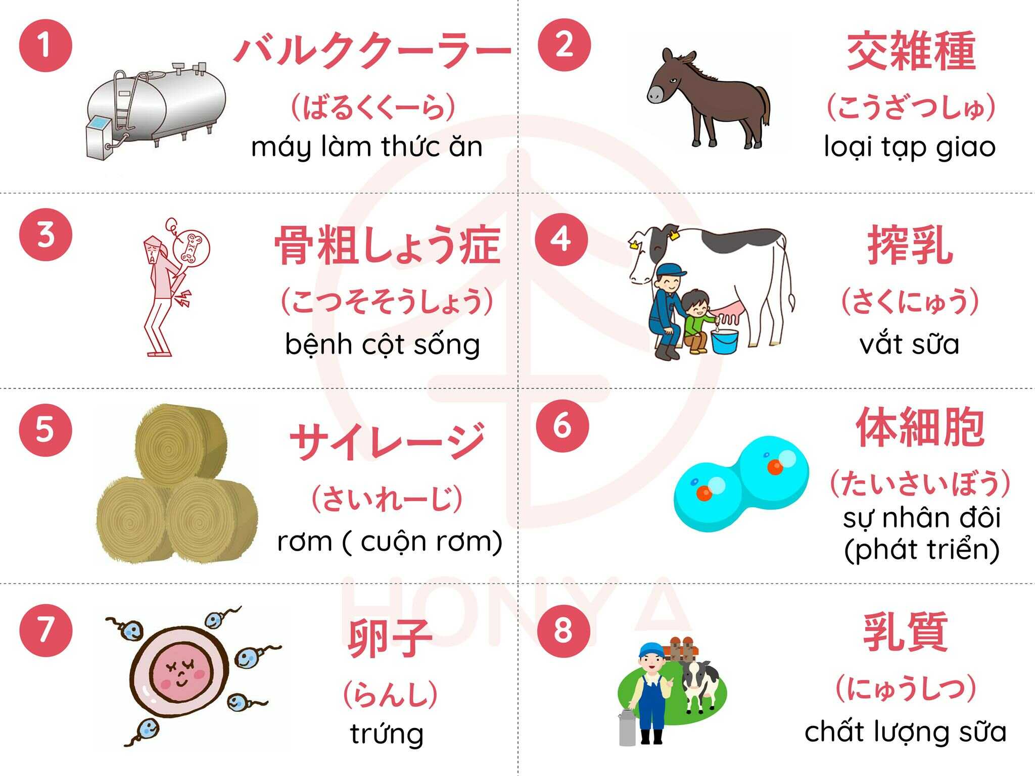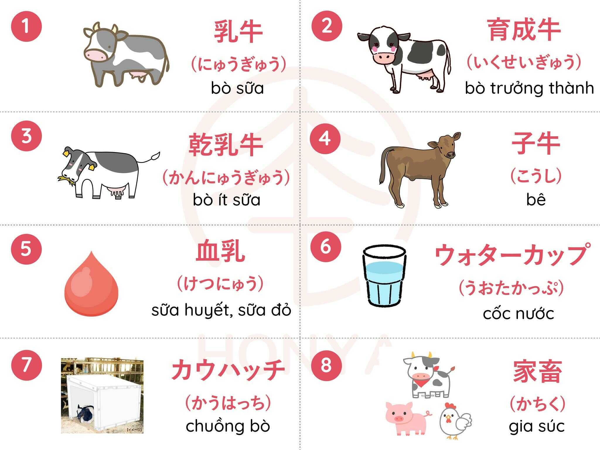 Từ vựng tiếng Nhật ngành Chăn Nuôi Bò Sửa