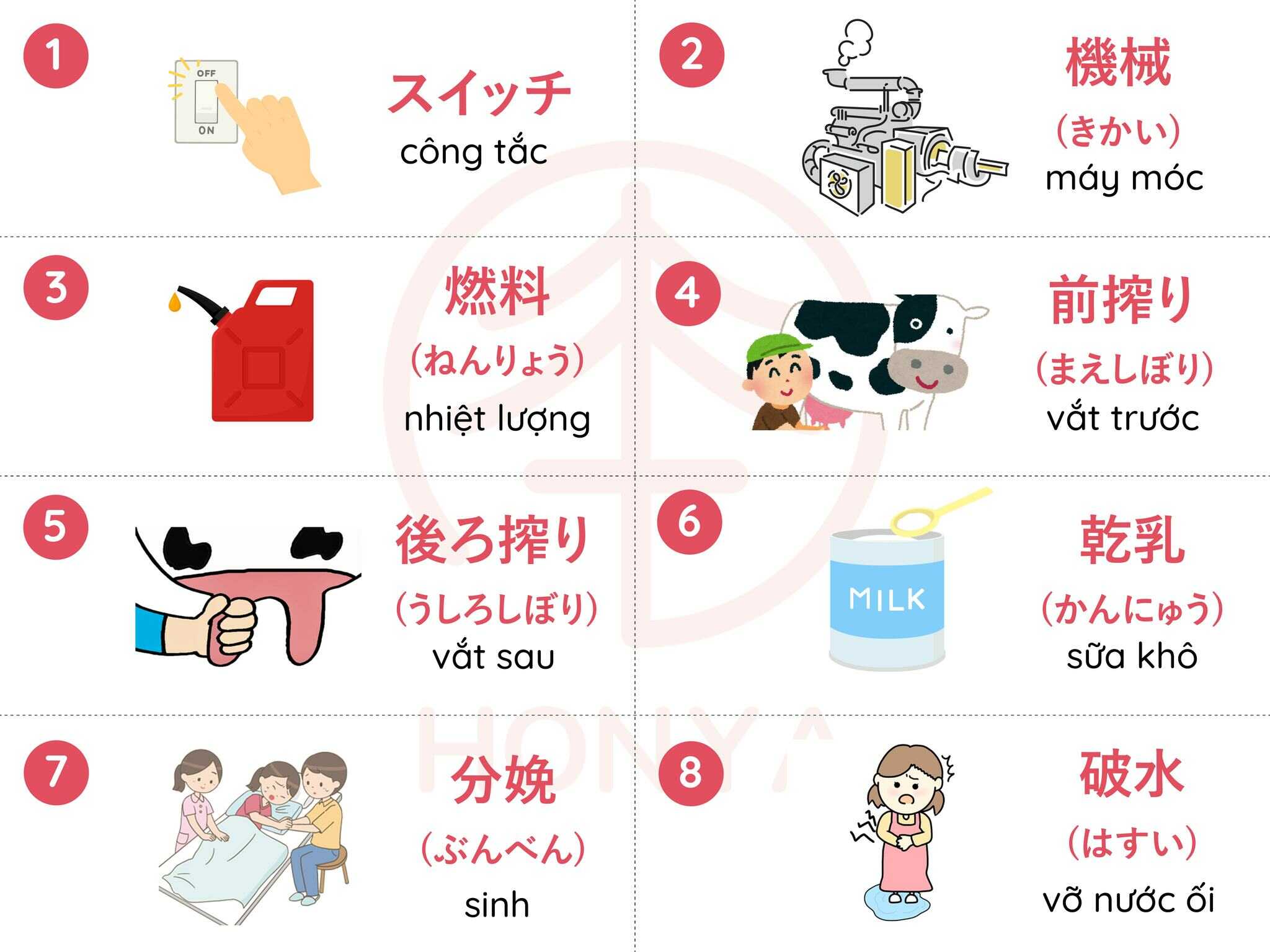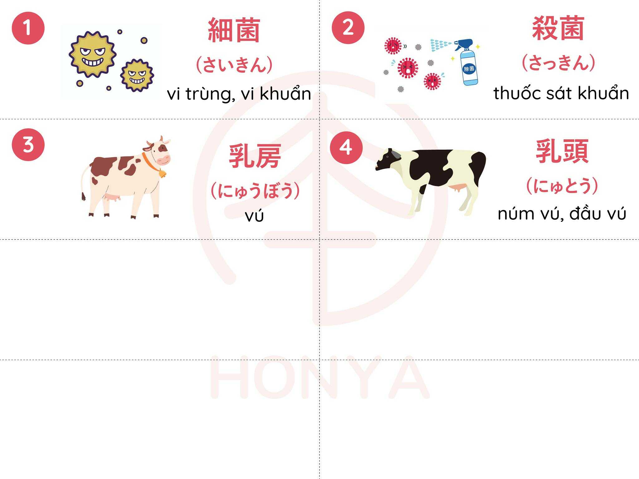 Đây là bộ từ vựng về chăn buôi bò sửa bằng tiếng Nhật, dành cho các bạn đi XKLĐ ngành chăn nuôi.
