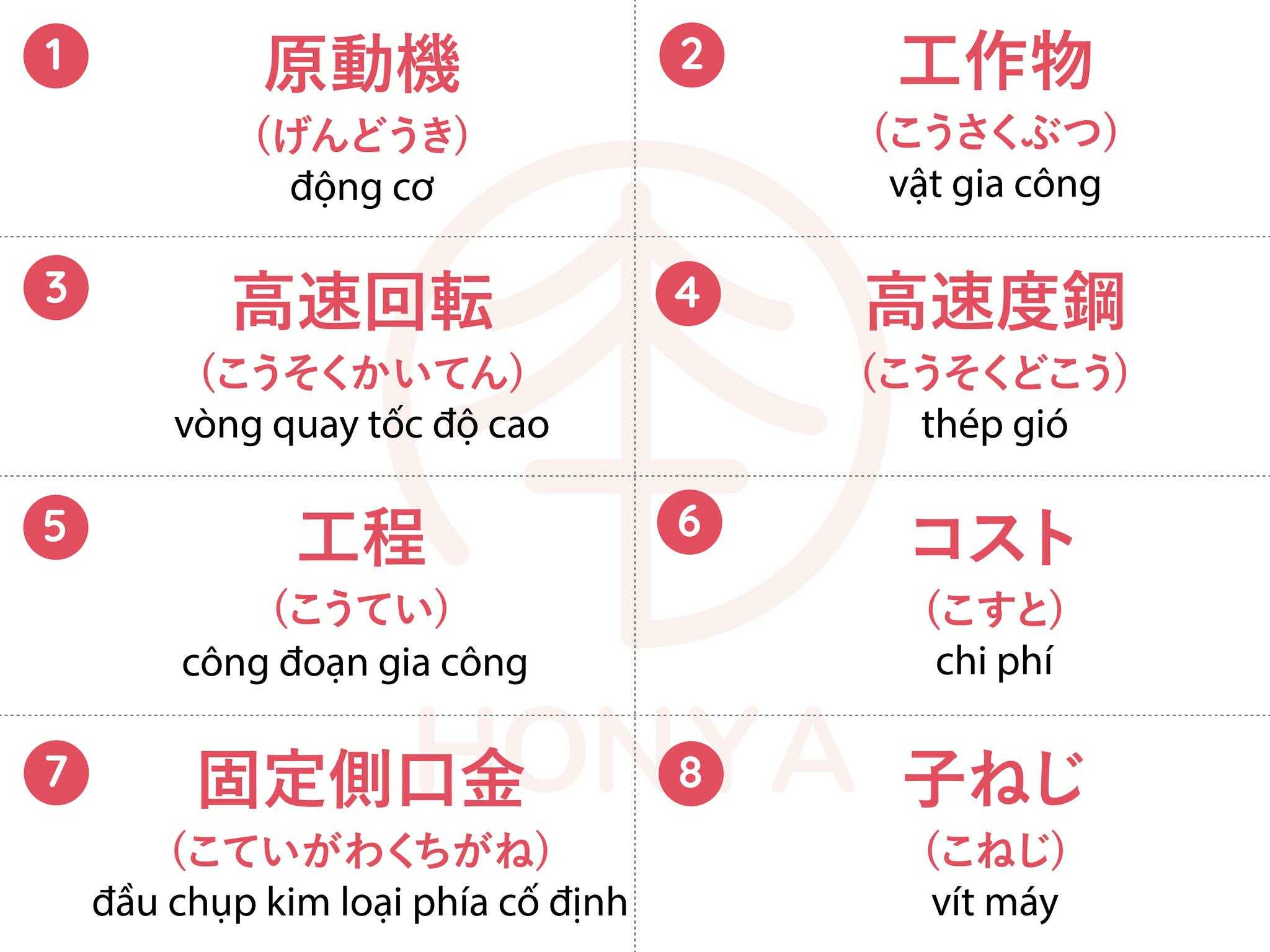 Từ vựng tiếng Nhật ngành Gia công cơ khí: Phần 2