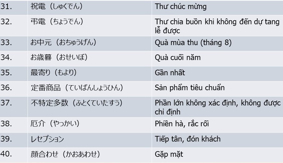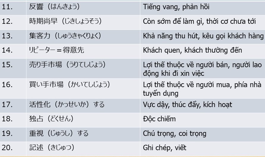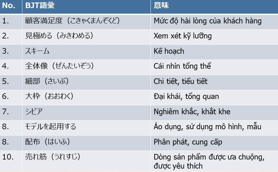 Từ vựng tiếng Nhật thương mại BJT: Phần 13 BJT Từ vựng tiếng Nhật thương mại BJT: Phần 13 Tổng hợp một số từ vựng Tiếng Nhật thương mại có xuất hiện trong bộ sách ôn thi BJT. . 2025-07-23 adminh Share