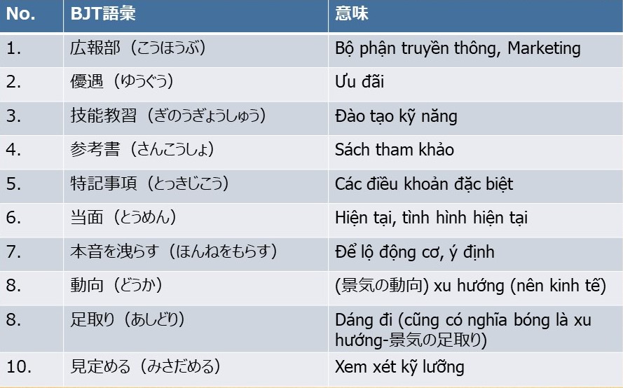 Tổng hợp một số từ vựng Tiếng Nhật thương mại có xuất hiện trong bộ sách ôn thi BJT.