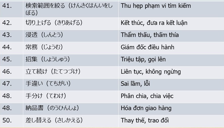 Từ vựng tiếng Nhật thương mại BJT: Phần 4