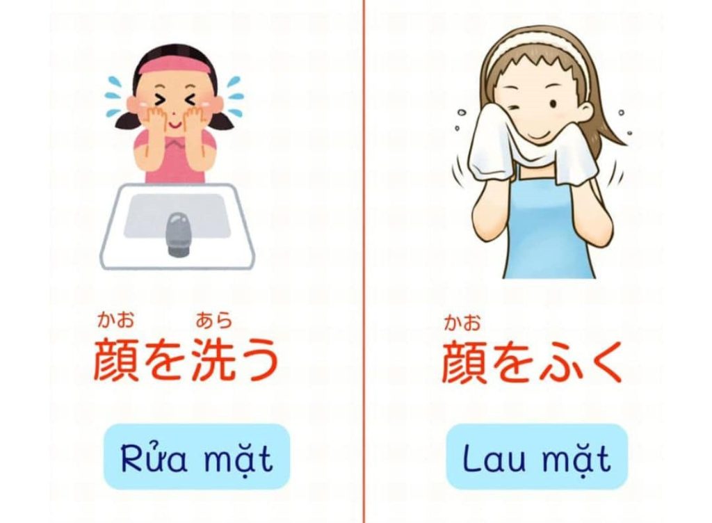 11. 顔(かお)を洗(あら)う: rửa mặt