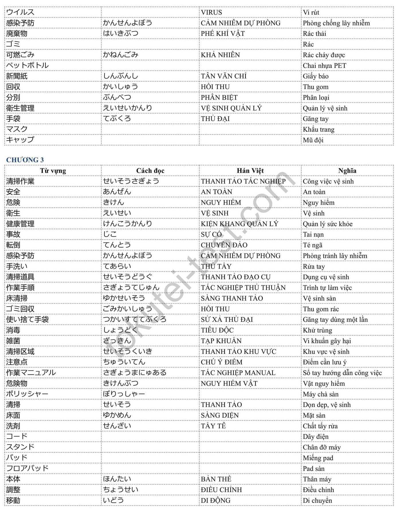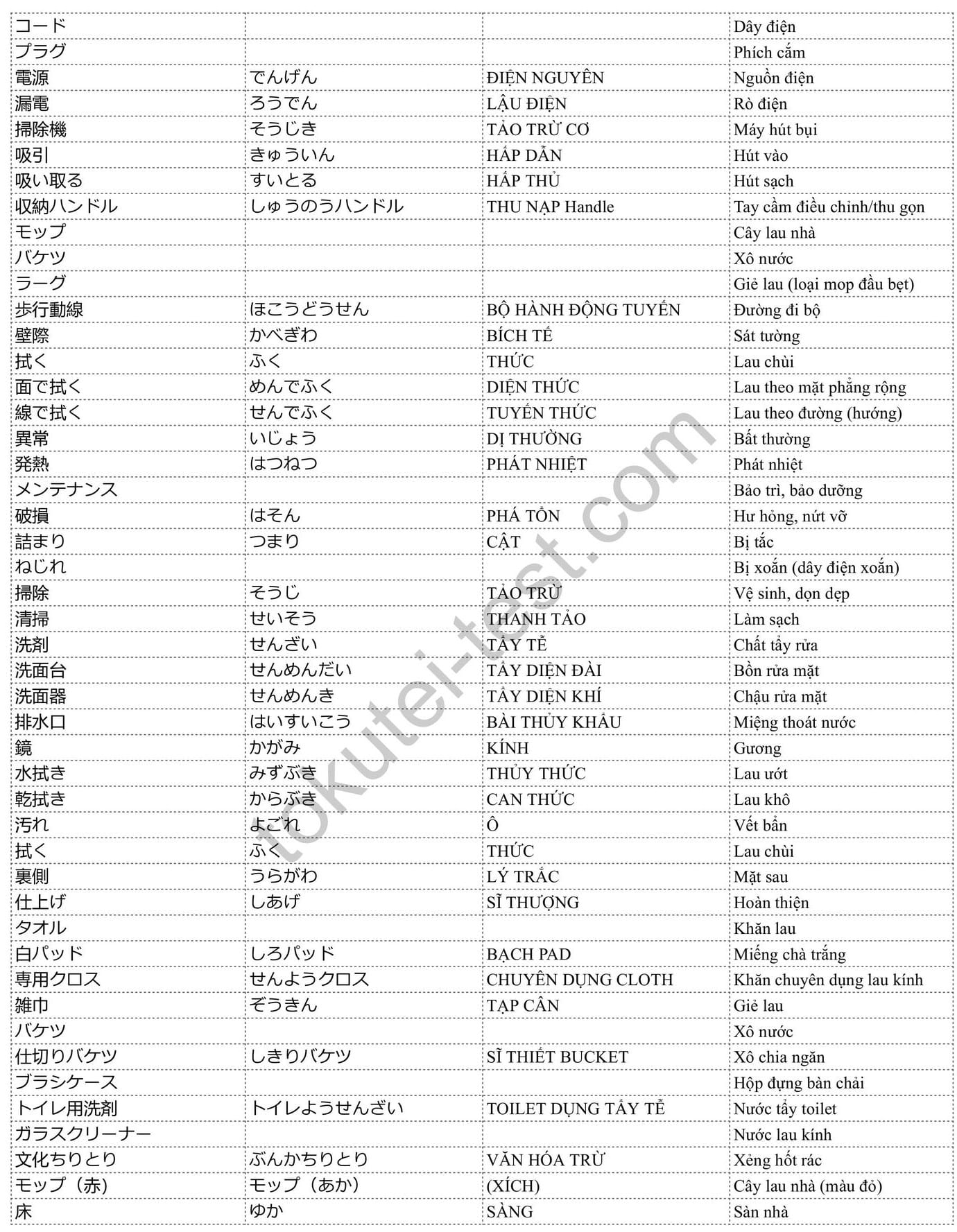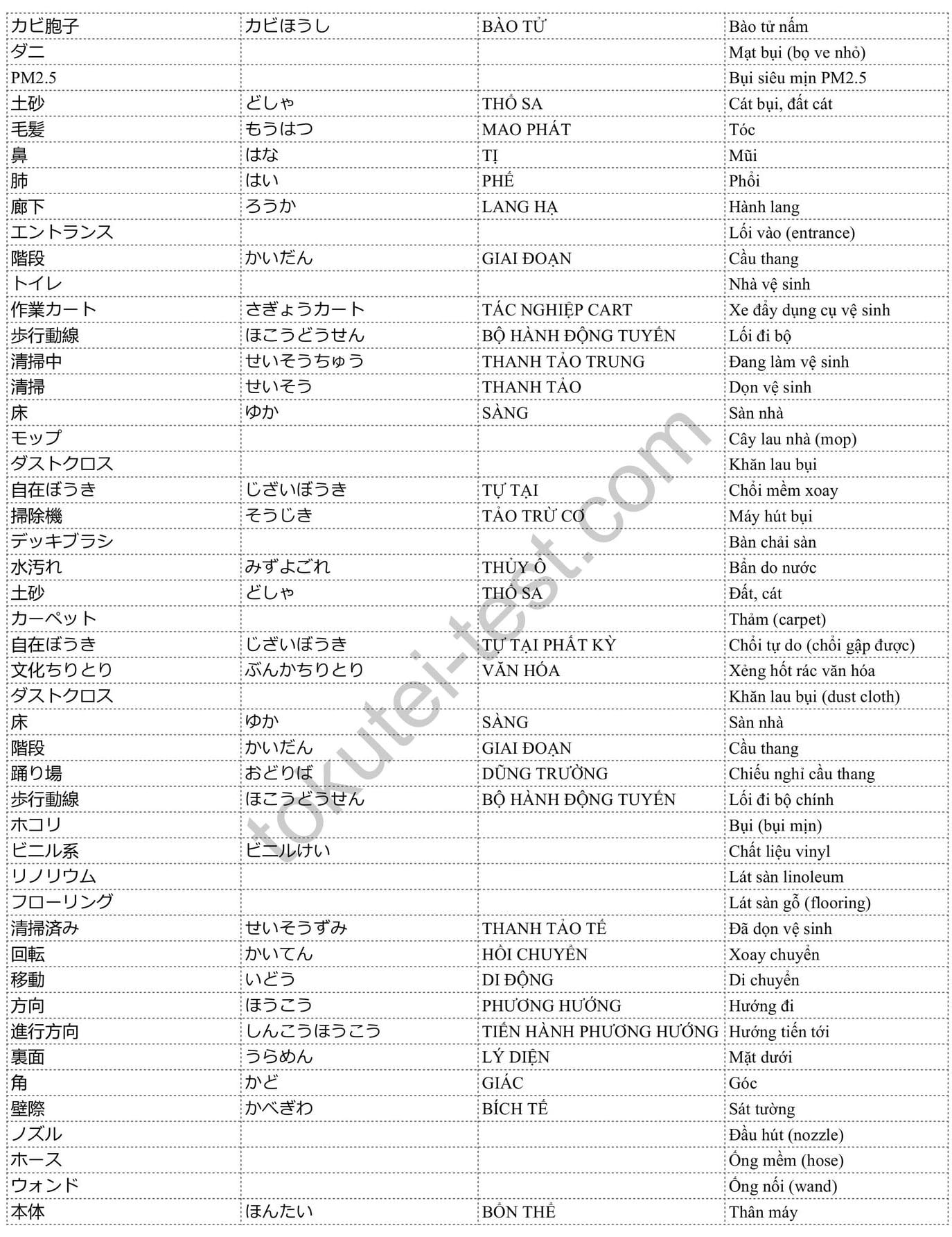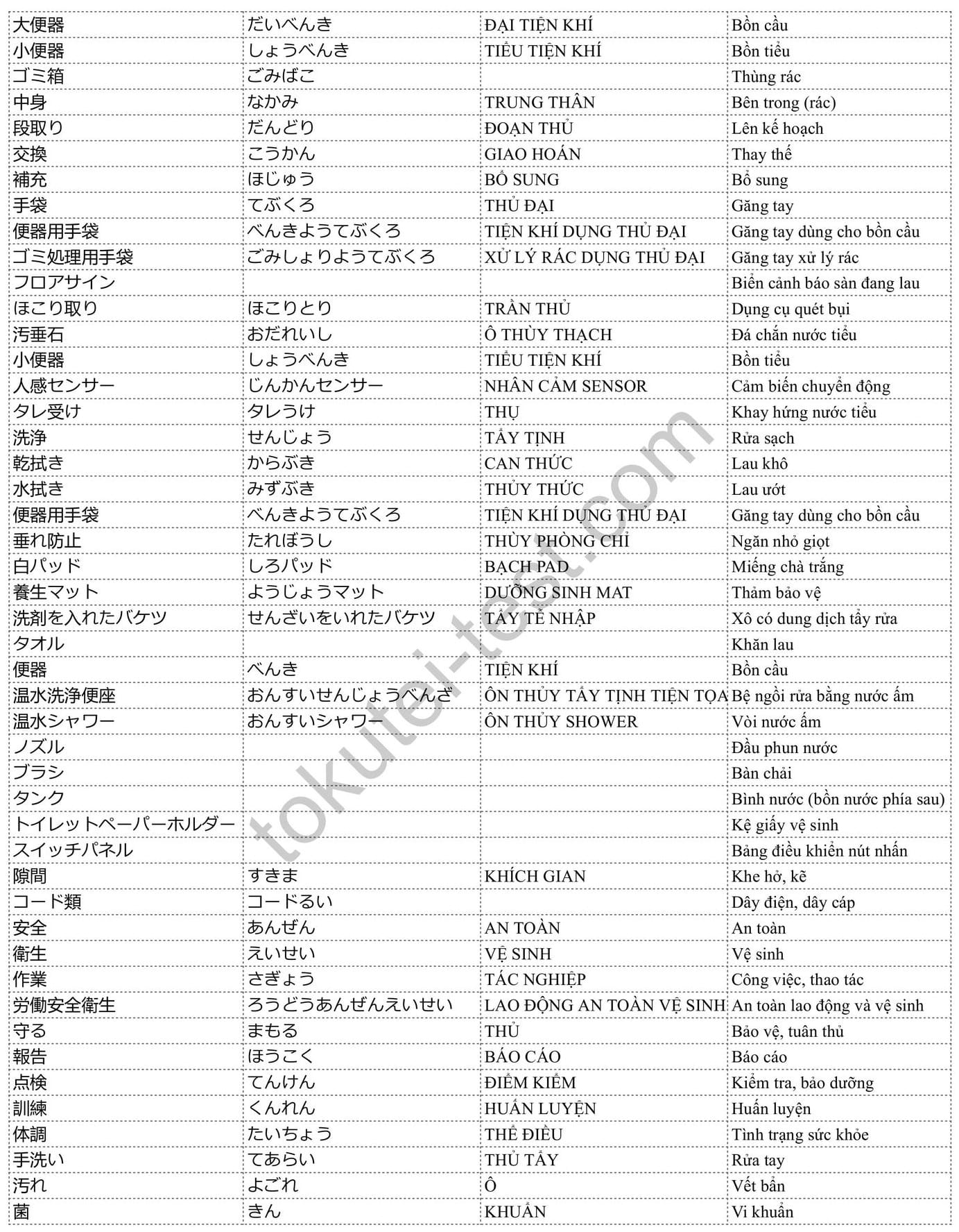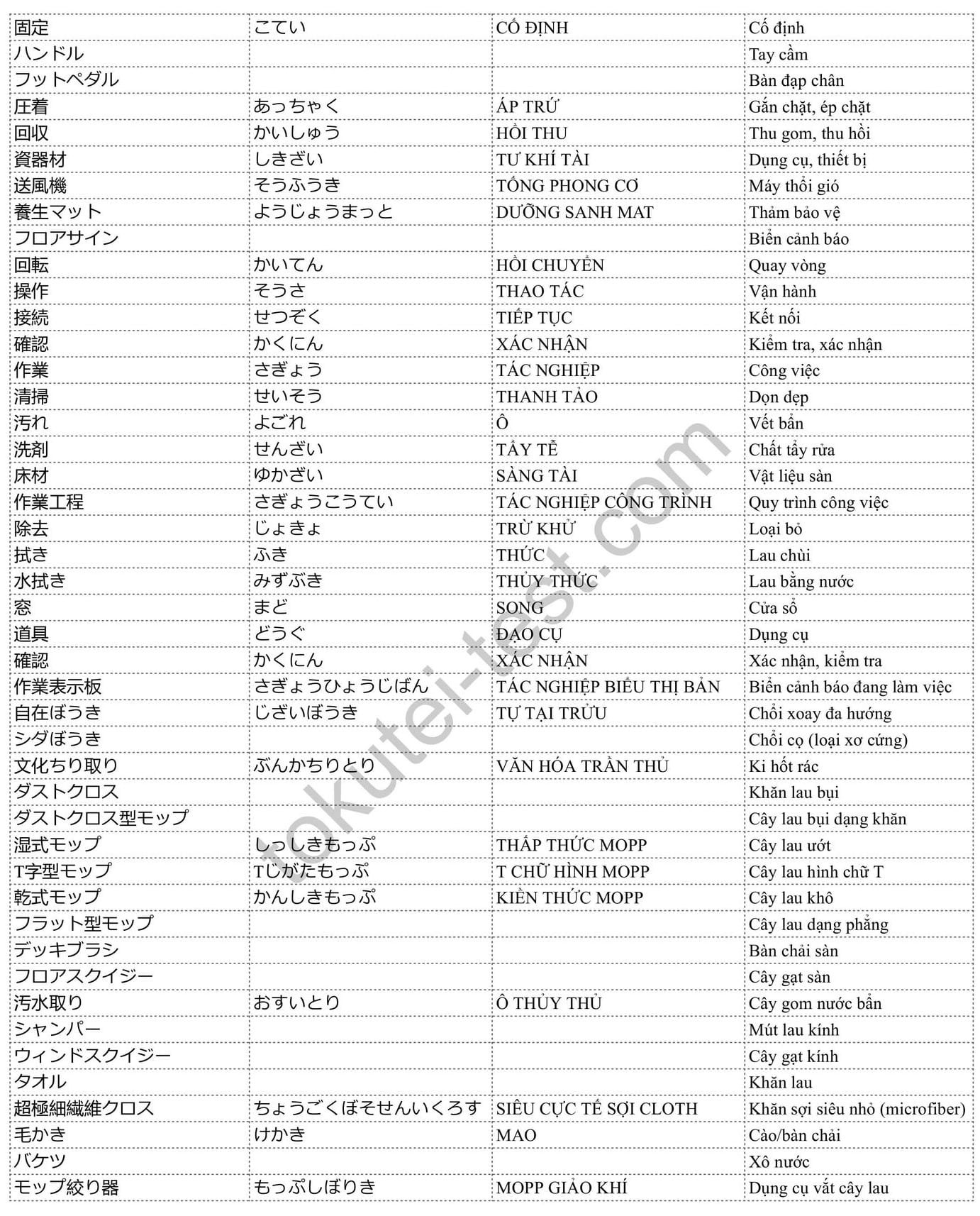 Cùng học từ vựng tiếng Nhật Tokutei 1 về chủ đề Vệ Sinh Tòa Nhà