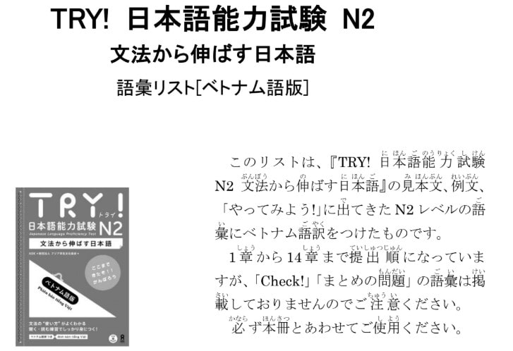 Tiengnhathay cùng gửi đến các bạn danh sách từ vựng tiếng Nhật N2 được trích từ giáo trình TRY N2.